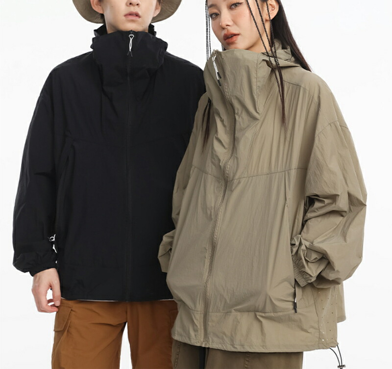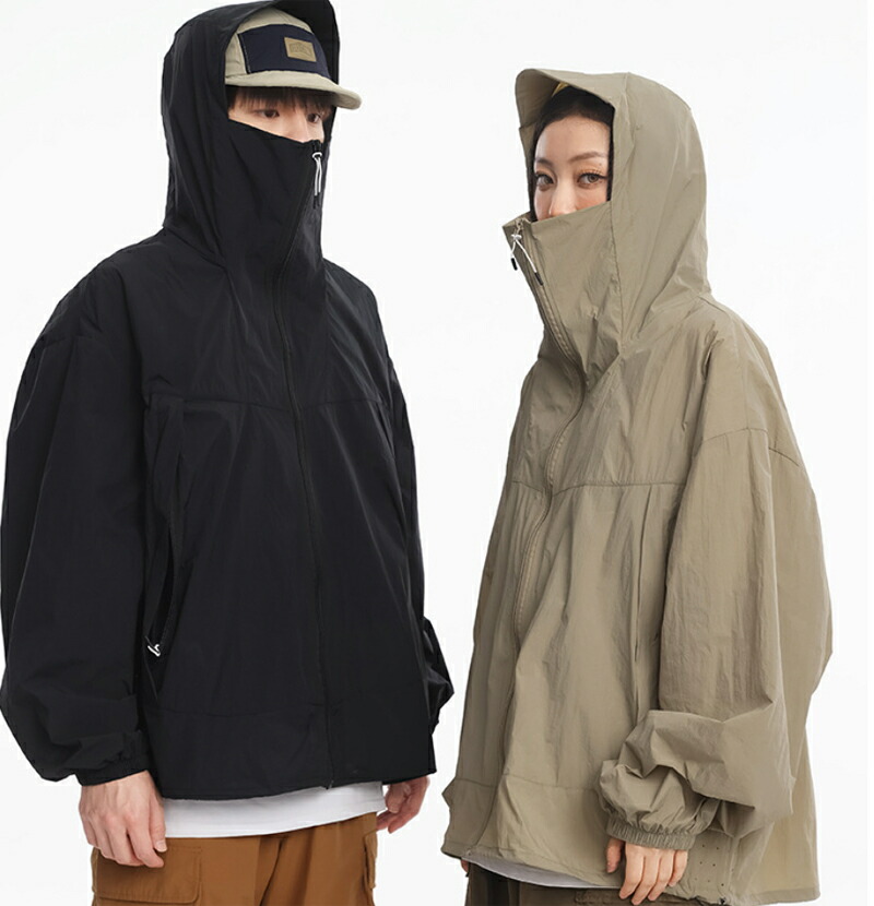 UVカット パーカー メンズ レディース ウインドブレーカー 薄手 涼しい ラッシュガード 長袖 ジップアップ ナイロン カジュアル フード付き 日焼け防止 ライトジャケット ウォーキング キャンプ