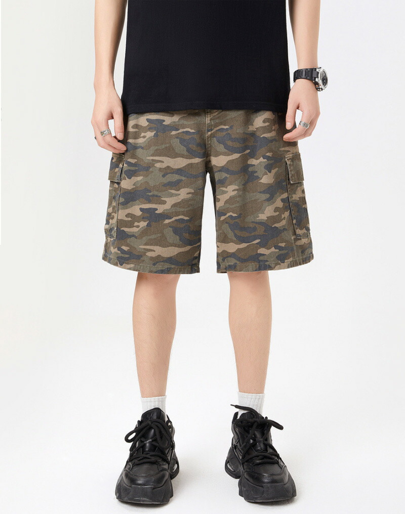 カーゴパンツ メンズ 五分丈 迷彩柄 綿100 ヴィンテージ 膝丈 半ズボン ストリート 大きいサイズ リラックス ボトムス ショート丈 USAモデル アウトドア アメカジ 夏 スポーツ キャンプ メ