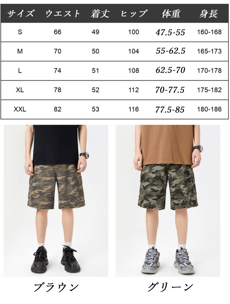 カーゴパンツ メンズ 五分丈 迷彩柄 ズボン パンツ 39%Off ブラウン グリーン S M L XL 2XL