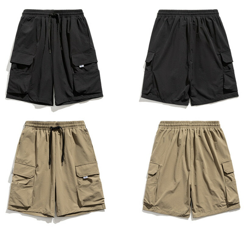 カーゴパンツ メンズ 五分丈 ポケット付き ショートパンツ 夏 ストリート ショート丈 大きいサイズ 薄手 おしゃれ 多機能 涼感 ワイドパンツ アウトドア スポーツ キャンプ カジュアル ビター系