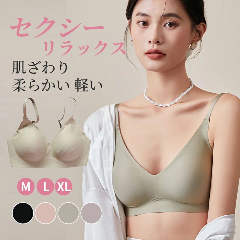 シルク ブラ ノンワイヤー シルクブラ インナー 下着 ナイトウエア 人気 黒 緑 肌色 グレー M(体重範囲45-55kg) L(体重範囲55-63kg) XL(体重範囲63-70kg)