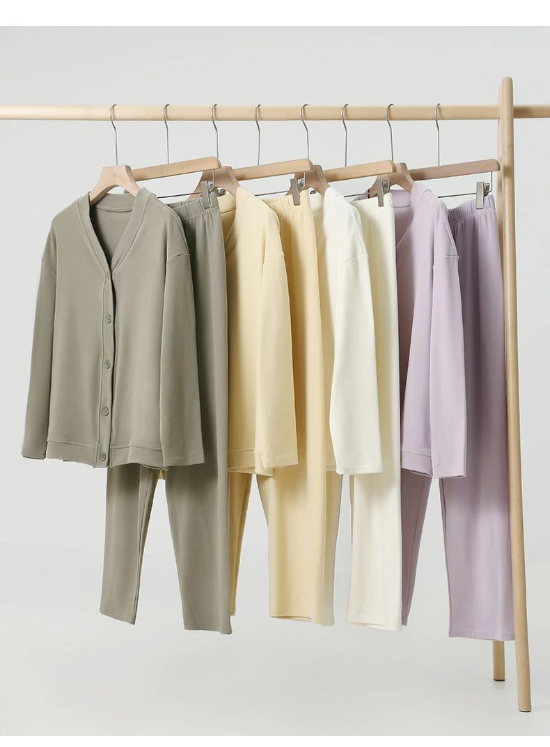 ルームウェア レディース 秋冬 部屋着 インナー 下着 ナイトウエア 通販 A-イエローセット B-白セット C-紫セット D-緑セット M L