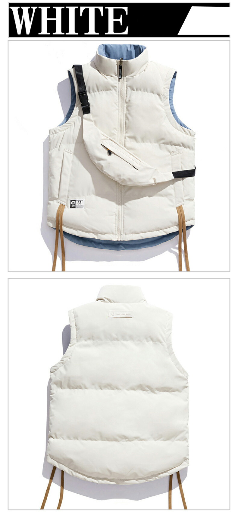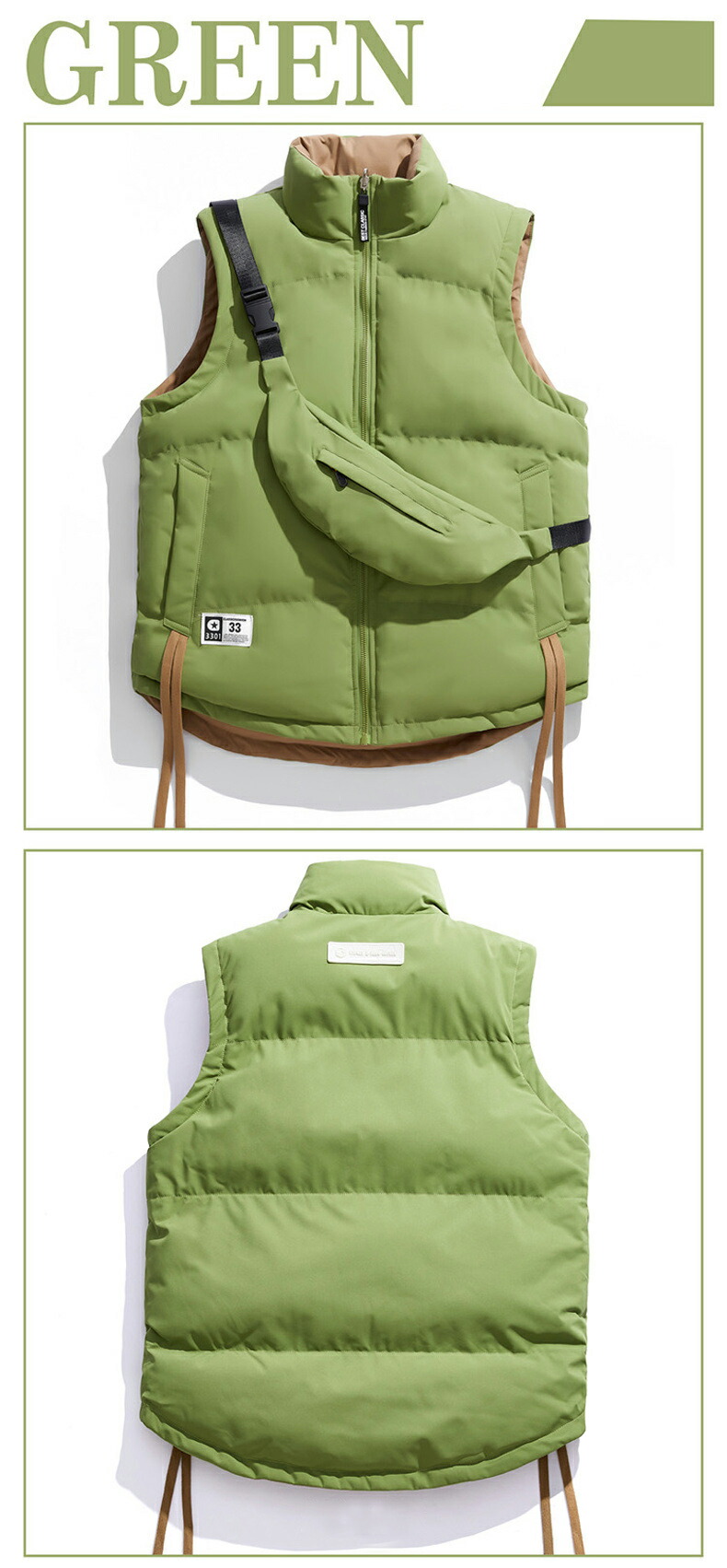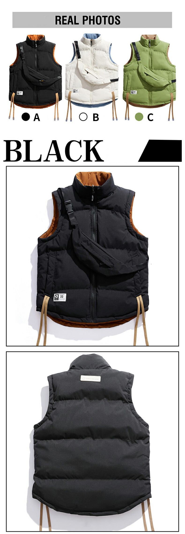 防寒ベスト メンズ 両面着 秋冬 あったか ショルダーバッグ付き 大きいサイズ カジュアル ダウンベスト ジップアップ 保温 防寒対策 おしゃれ 青少年 通学 中綿ジャケット トップス シンプル 無地