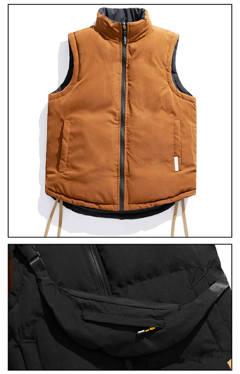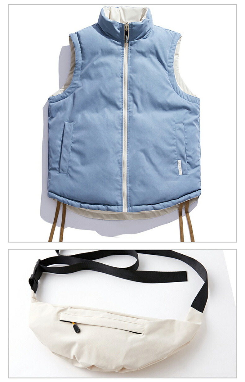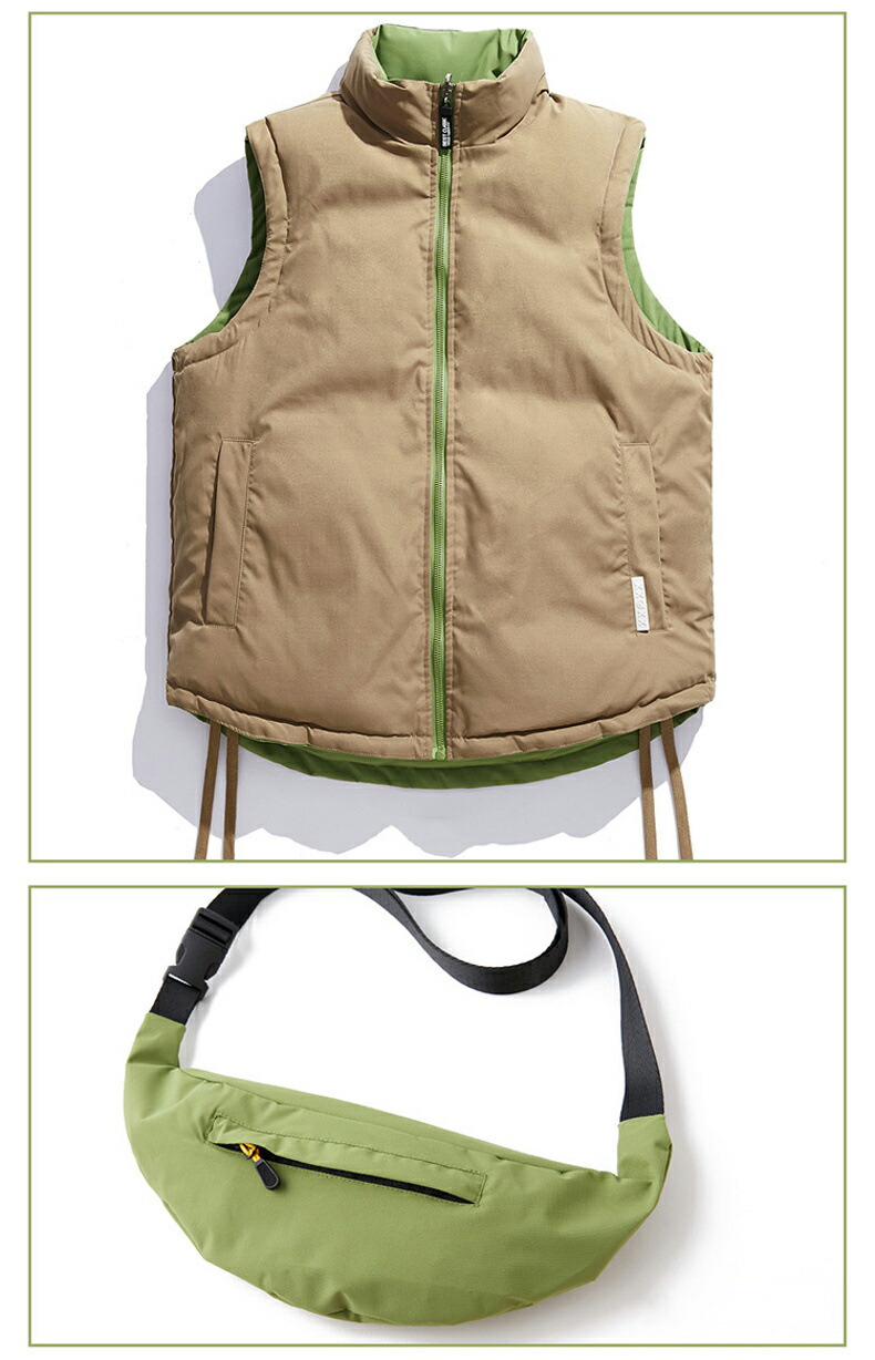 防寒ベスト メンズ 両面着 秋冬 あったか ショルダーバッグ付き 大きいサイズ カジュアル ダウンベスト ジップアップ 保温 防寒対策 おしゃれ 青少年 通学 中綿ジャケット トップス シンプル 無地