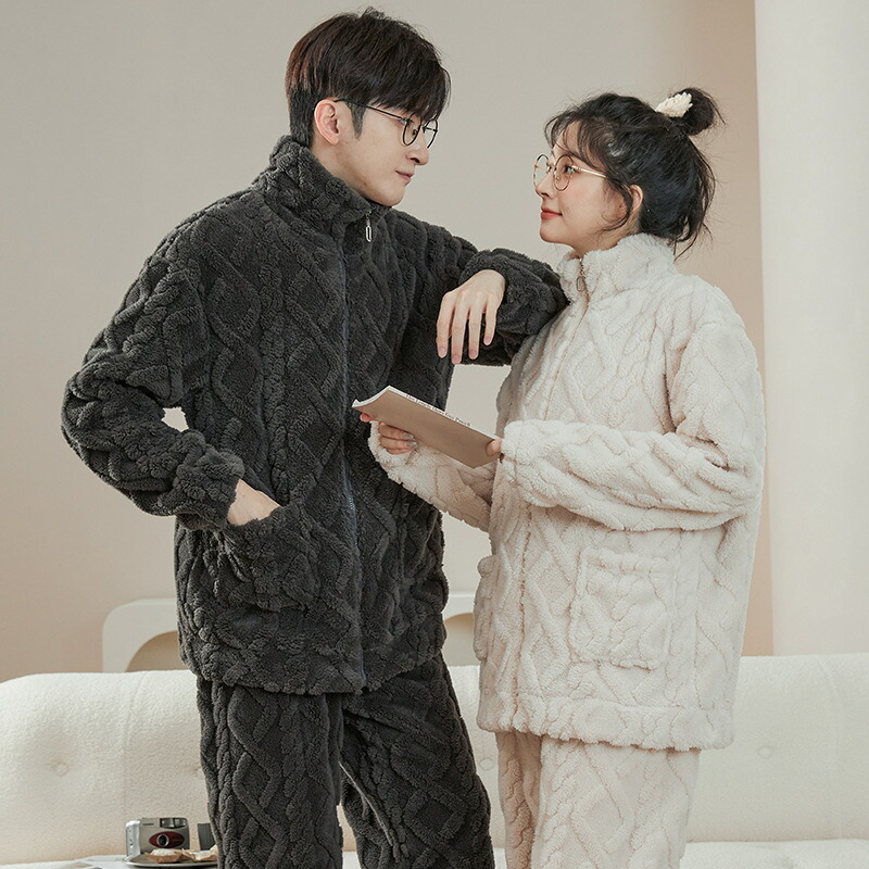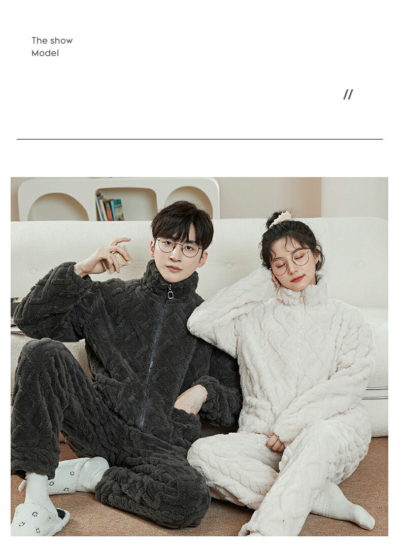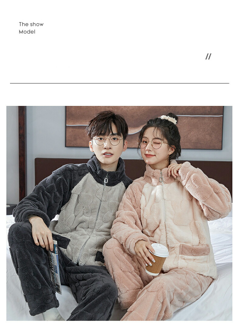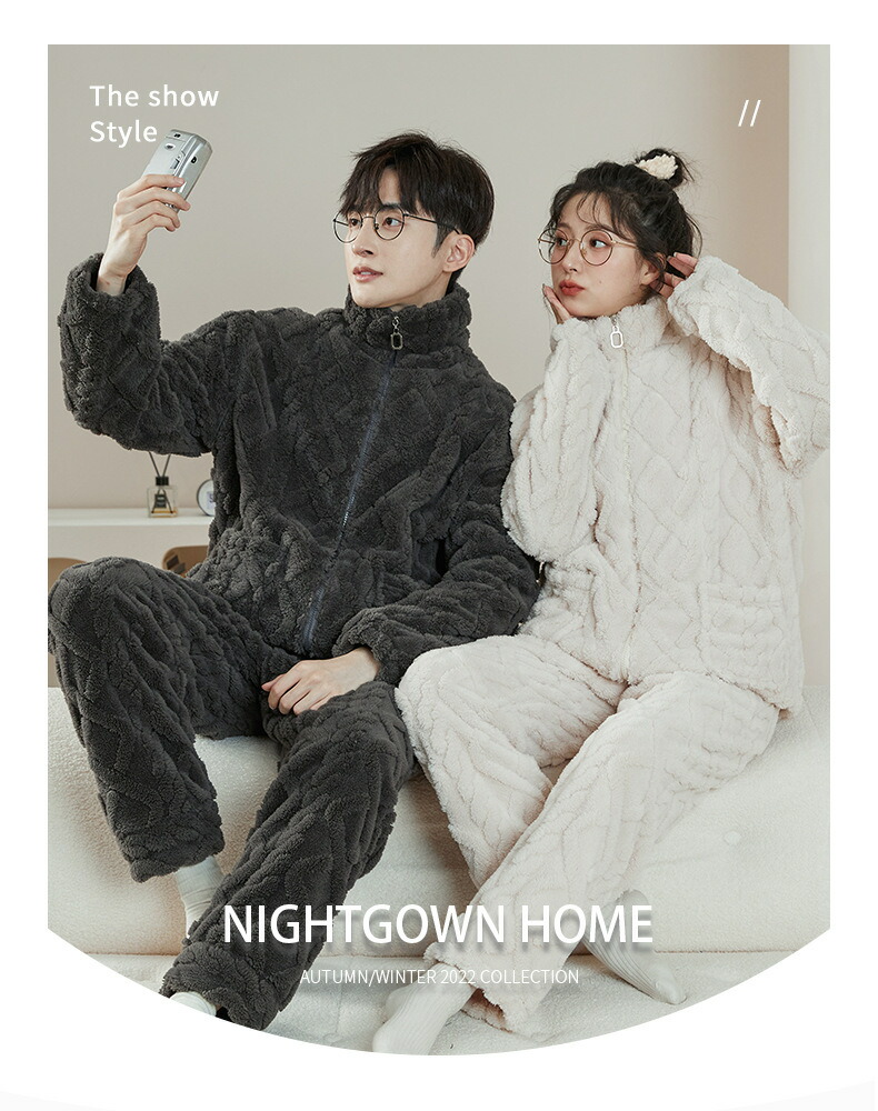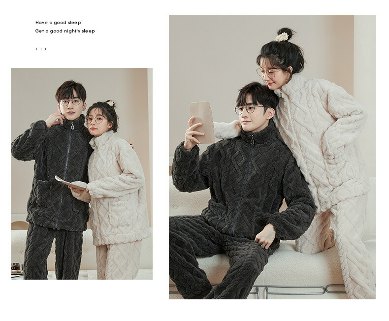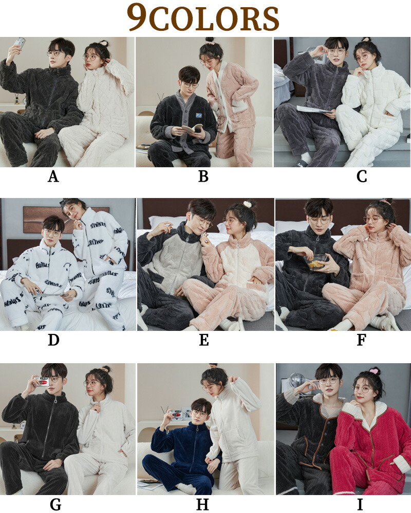 【送料無料】パジャマセット ユニセックス 暖かい モコモコ ペアルック トップス ボトムス 上下 セット ナイトガウン おしゃれ ペアパジャマ 冬用 全9色