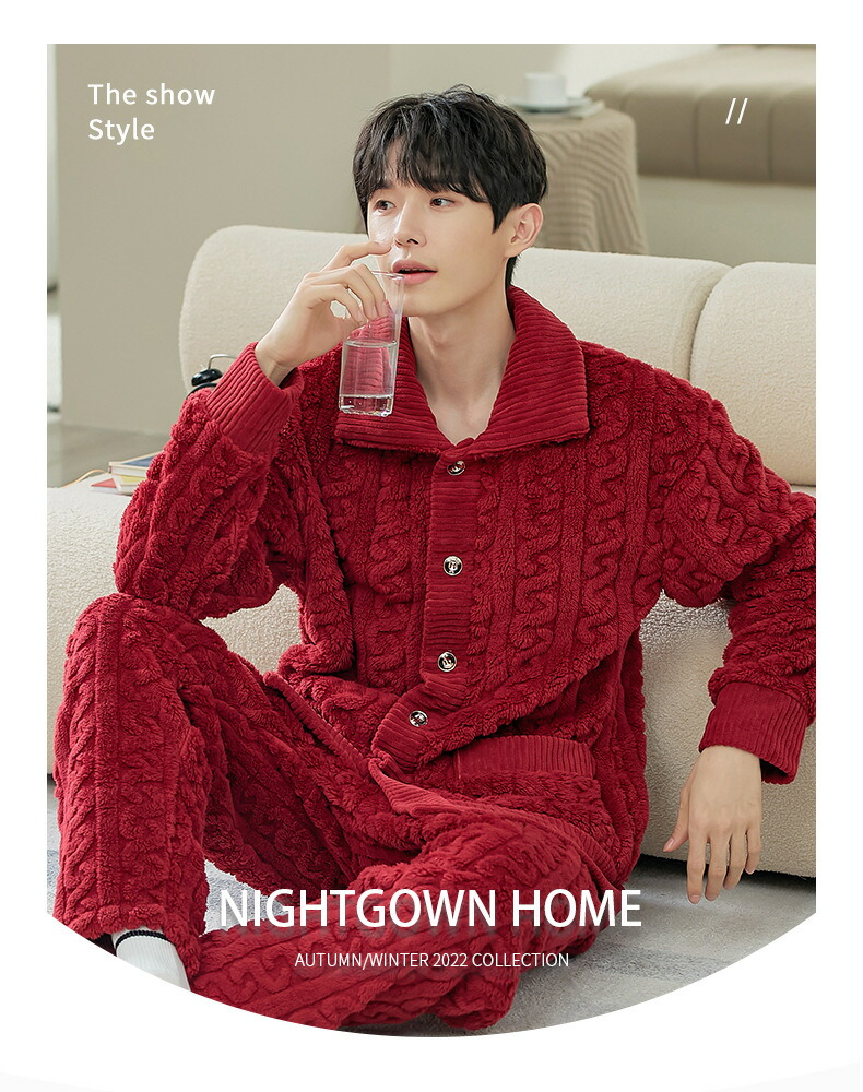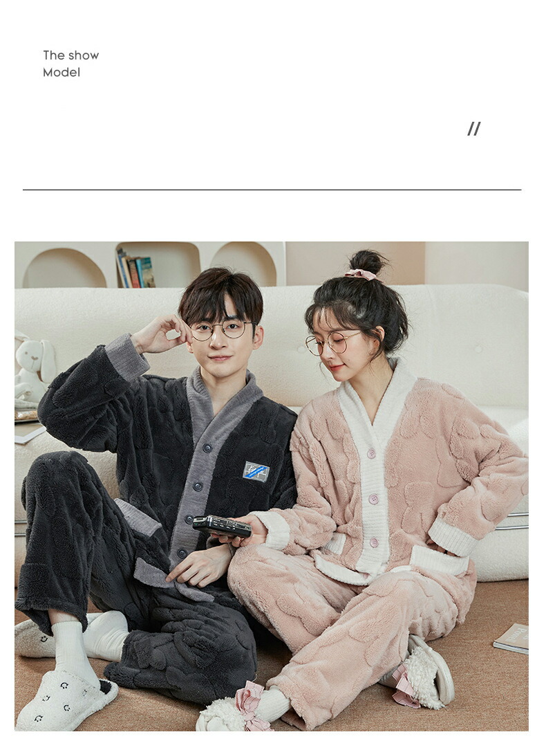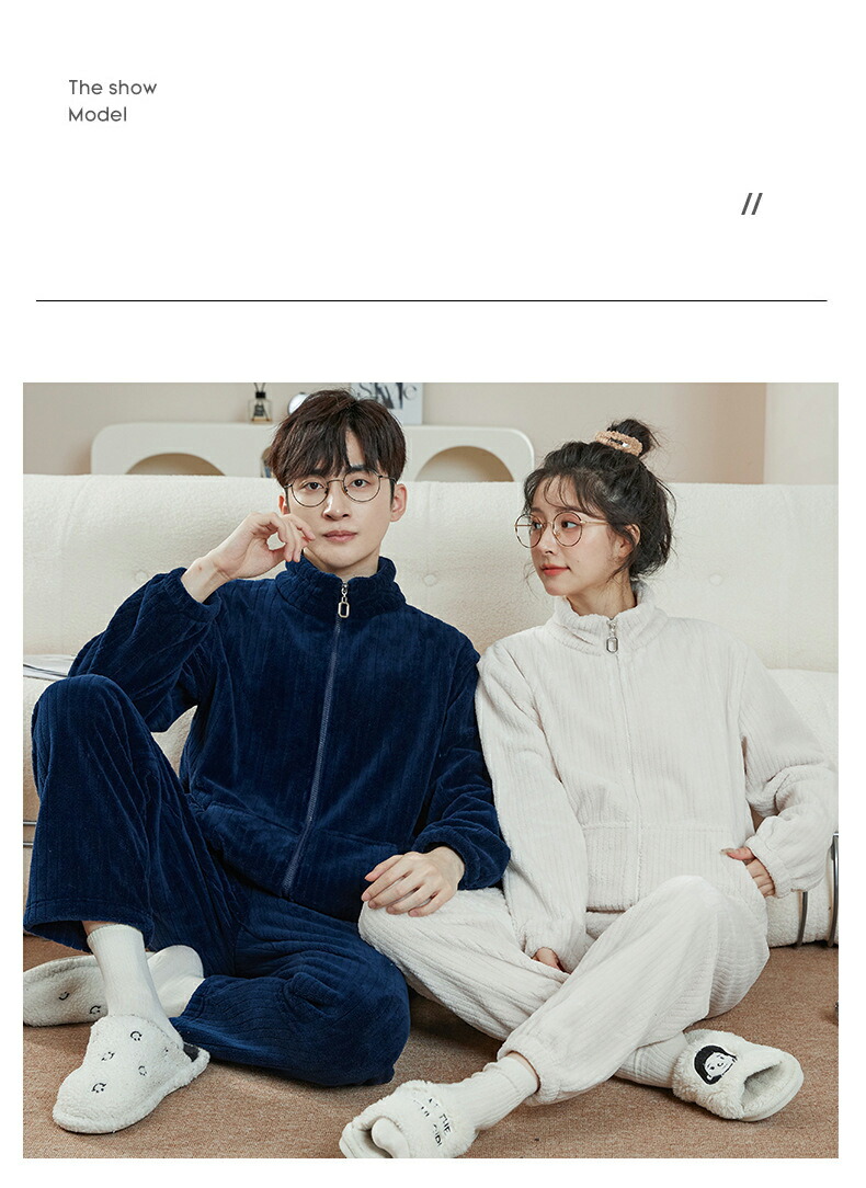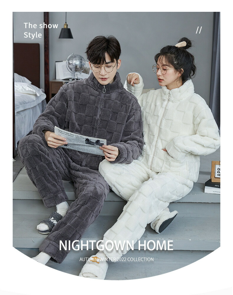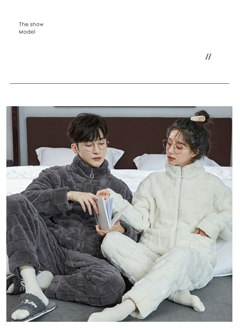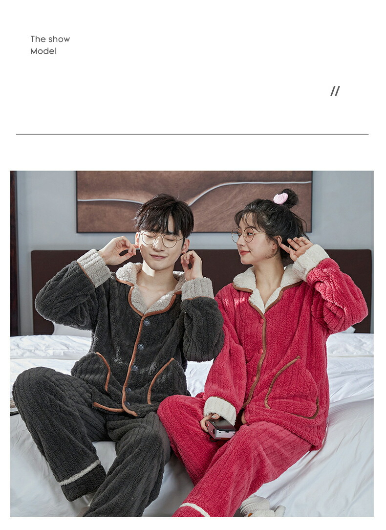 【送料無料】パジャマセット ユニセックス 暖かい モコモコ ペアルック トップス ボトムス 上下 セット ナイトガウン おしゃれ ペアパジャマ 冬用 全9色