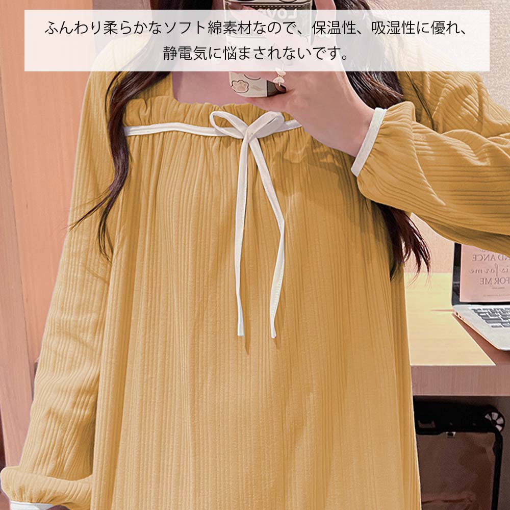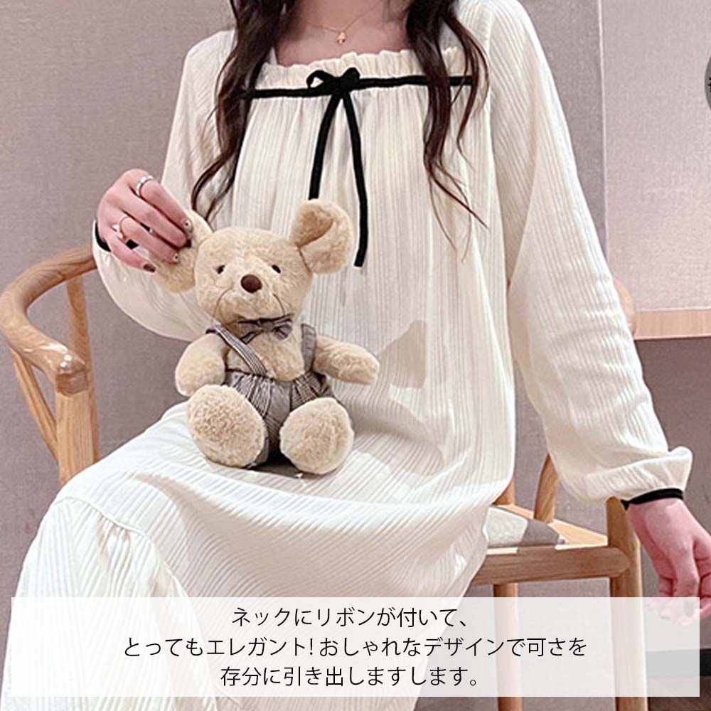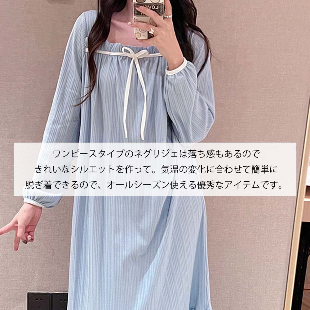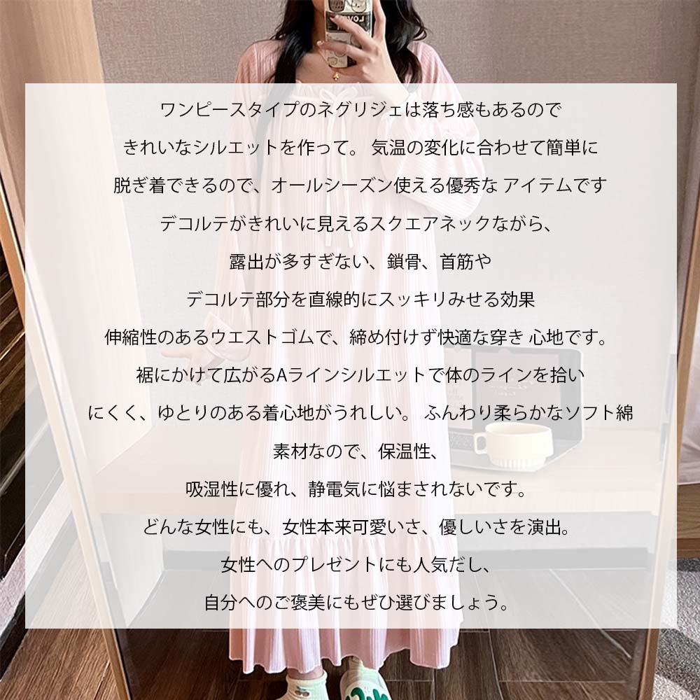 ネグリジェ ルームウェア レディース パジャマ ワンピース ルームワンピース 可愛い 長袖 ルーム パジャマ 寝巻き マタニティ ルームサプリ コットン 柔らか ロング丈 ナイトウェア 可愛