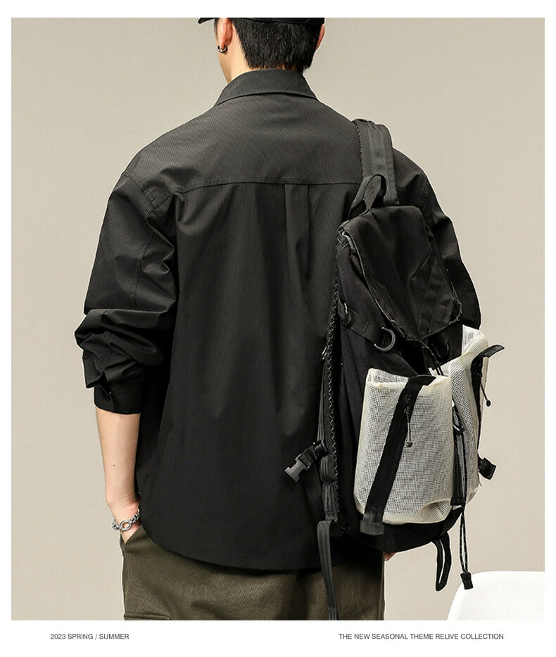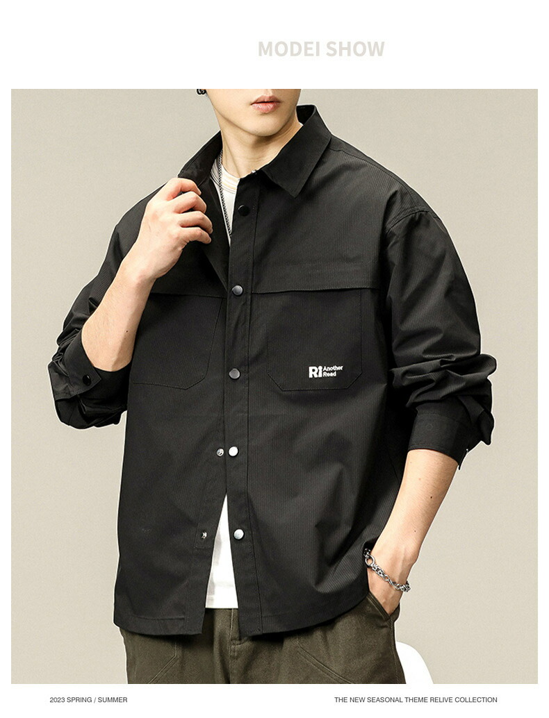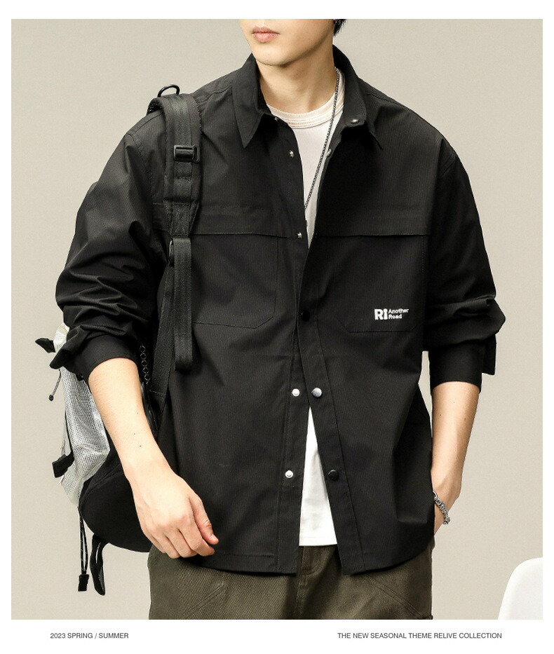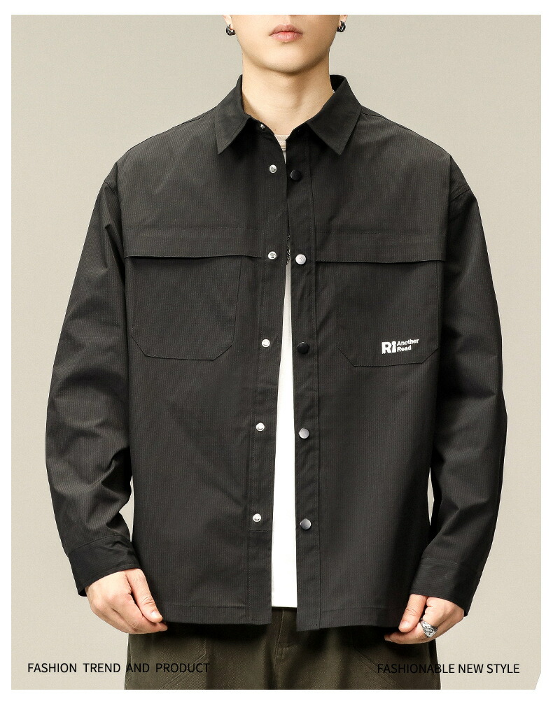 【送料無料】カーゴシャツ メンズ ゆったり アメカジ ストリート ライトアウター ポケット付き かっこいい お釣り 登山 キャンプ ブラック ダークグリーン M~3XL