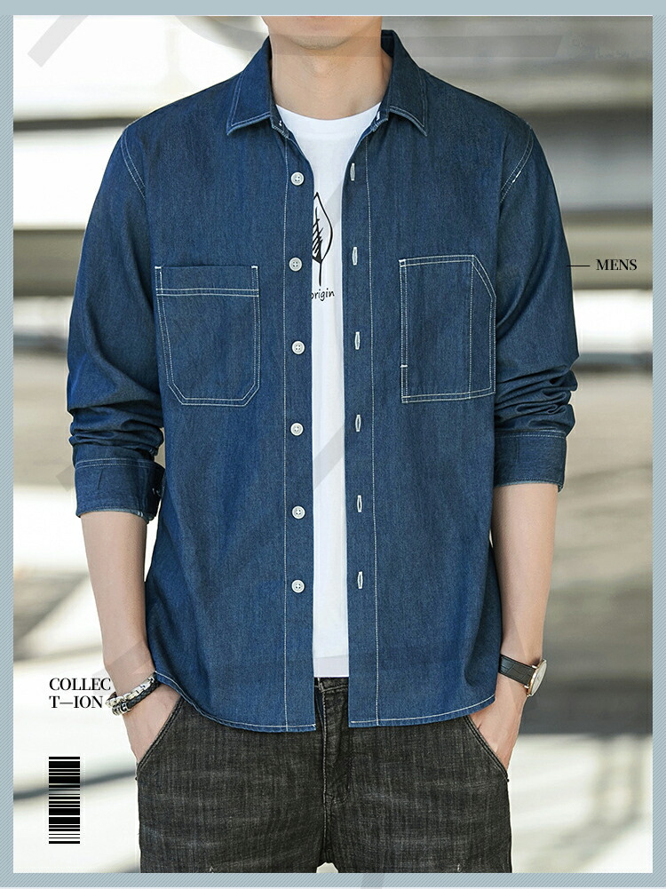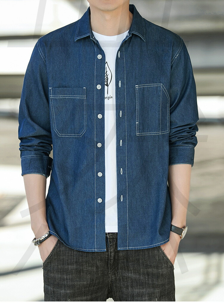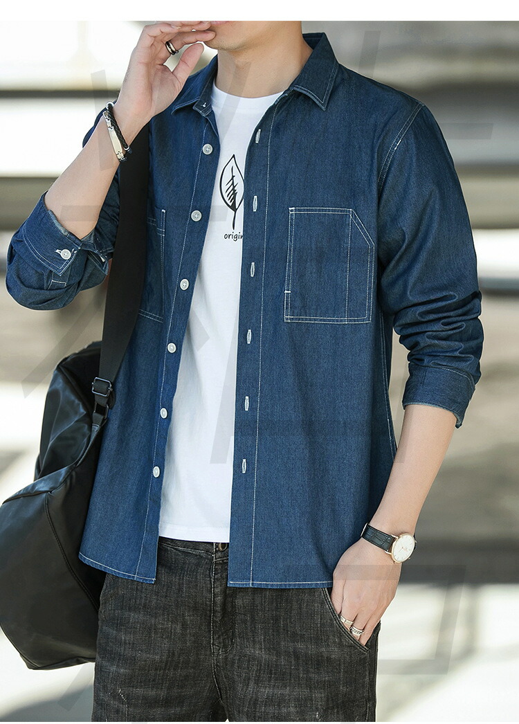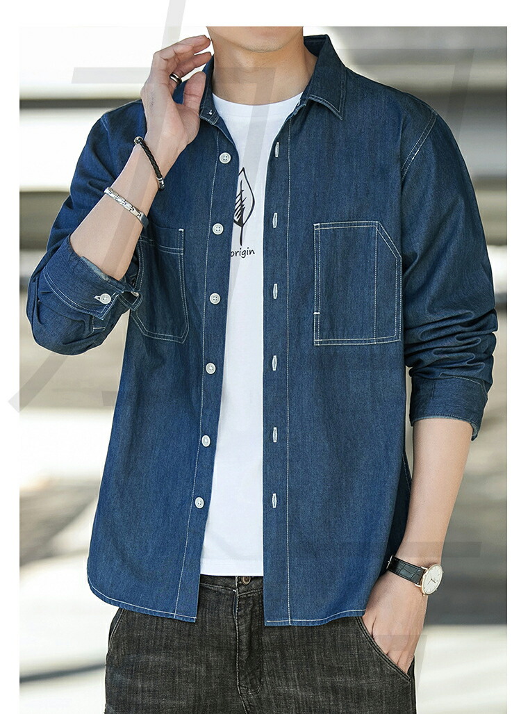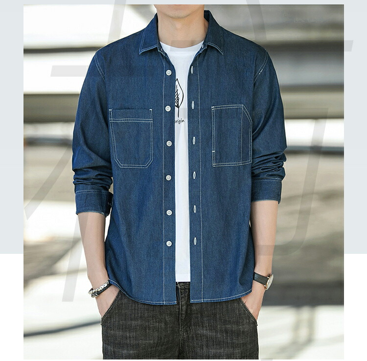 デニムシャツ メンズ 長袖 綿100 トップス カジュアルシャツ 新作