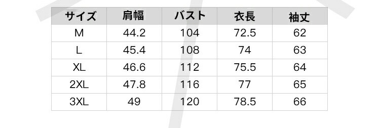 ■サイズ:M~3XL/サイズ表をご参考ください。