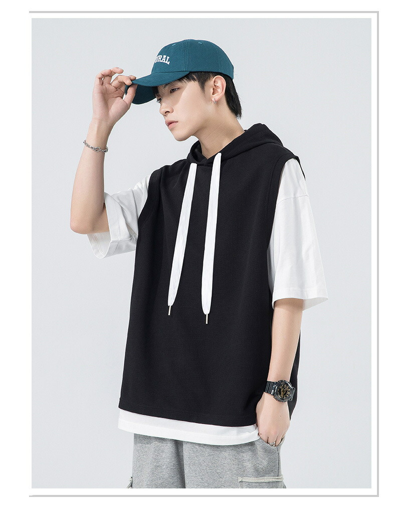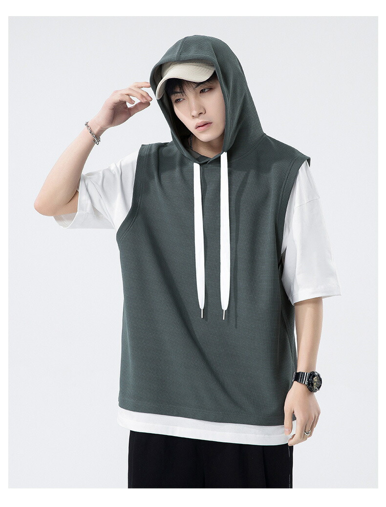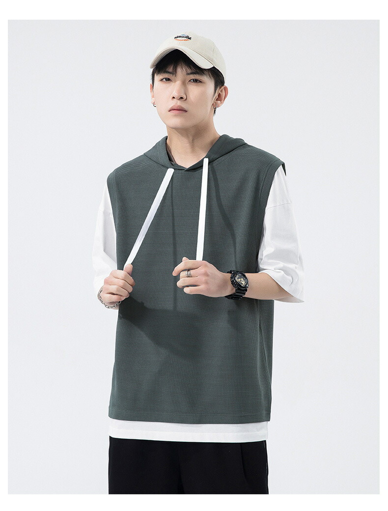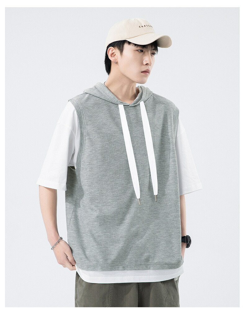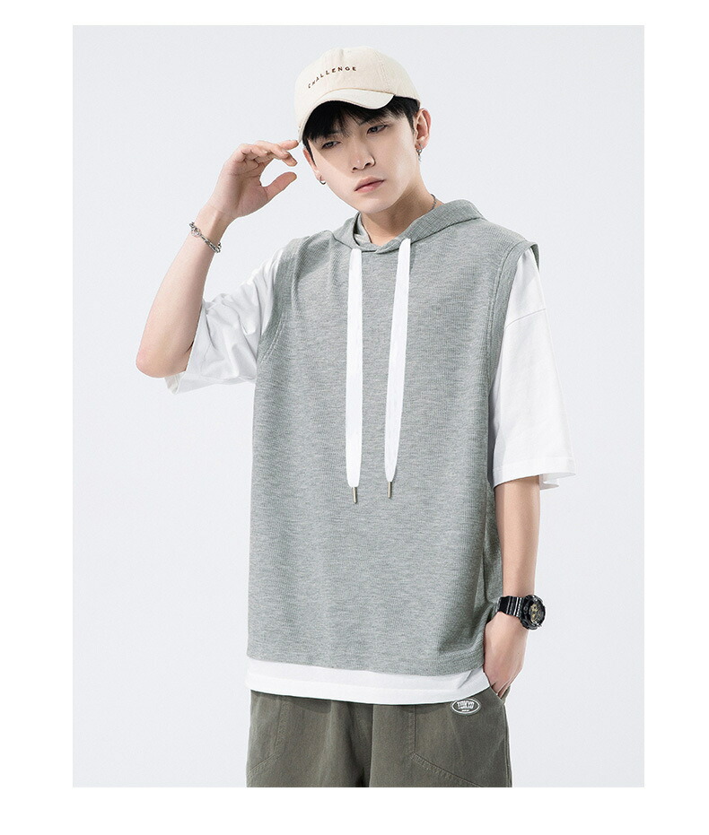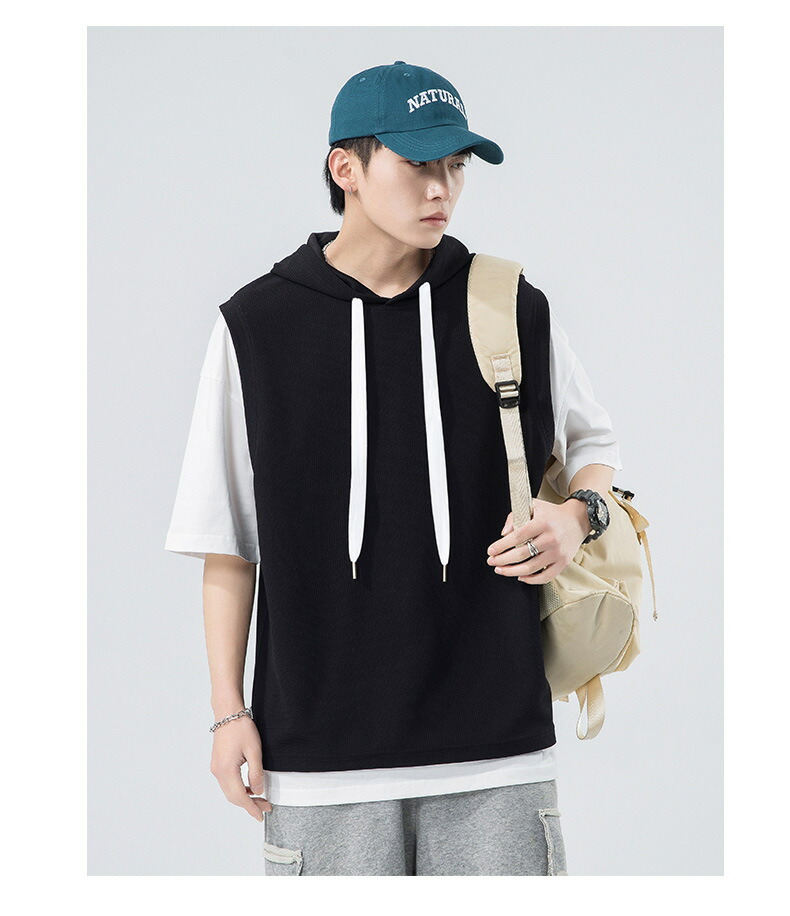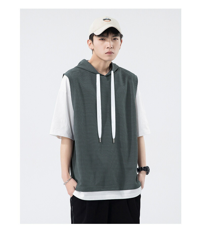 【最大2000円OFF】半袖 パーカー メンズ 夏用 Tシャツ フード付き 五分袖 半袖パーカー 吸汗速乾 プルオーバー 大きいサイズ 青少年 レイヤード風 男性 カジュアル 切り替え トップス 学生 運動 通学 スポーツ ヒップホップ ゆったり おしゃれ メンズファッション