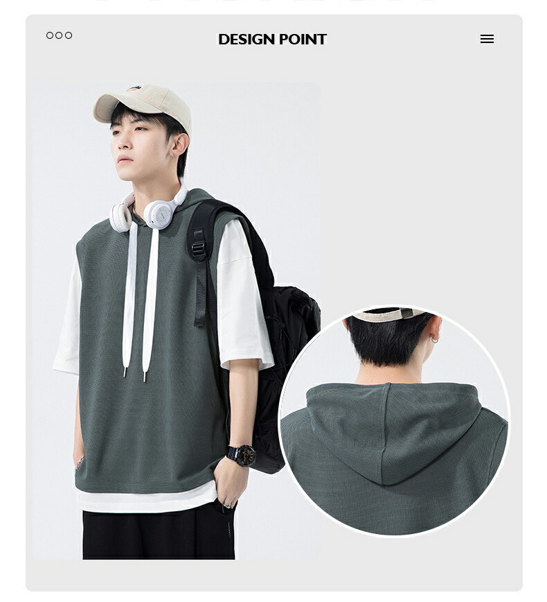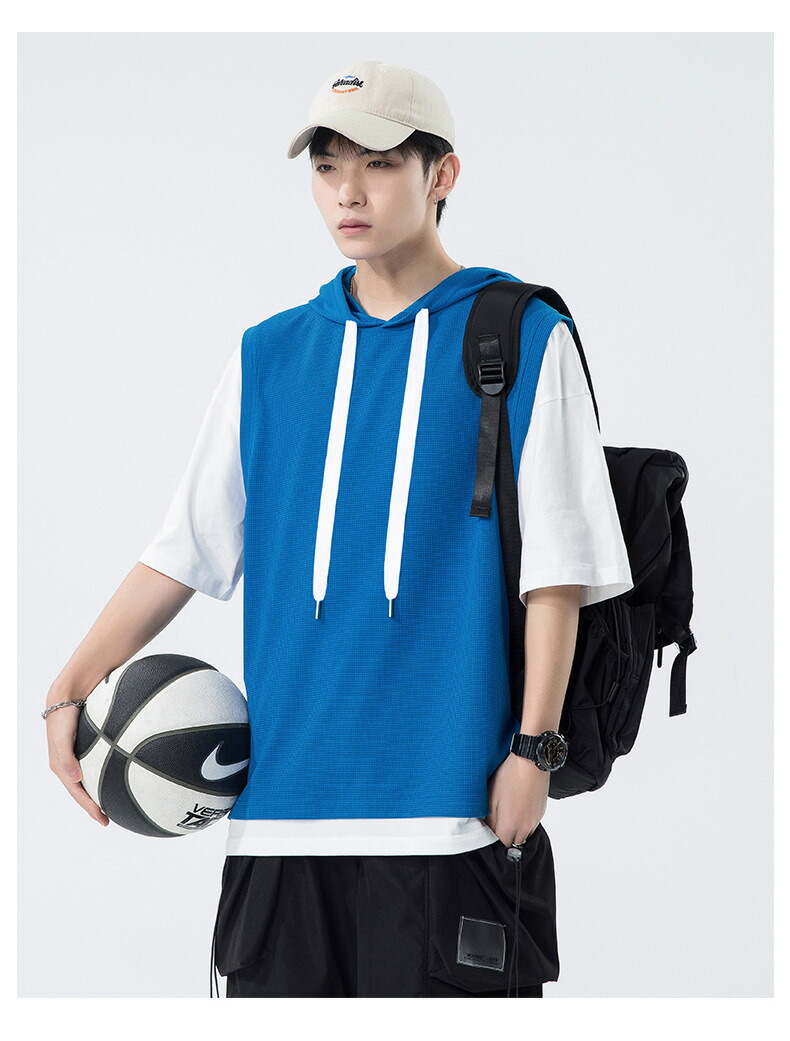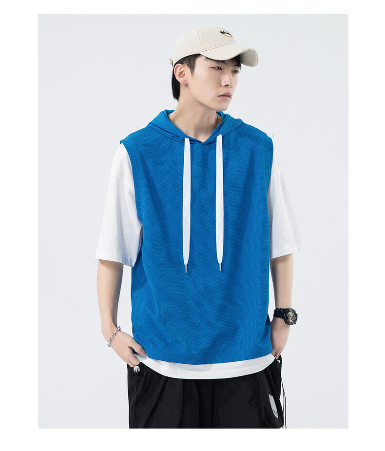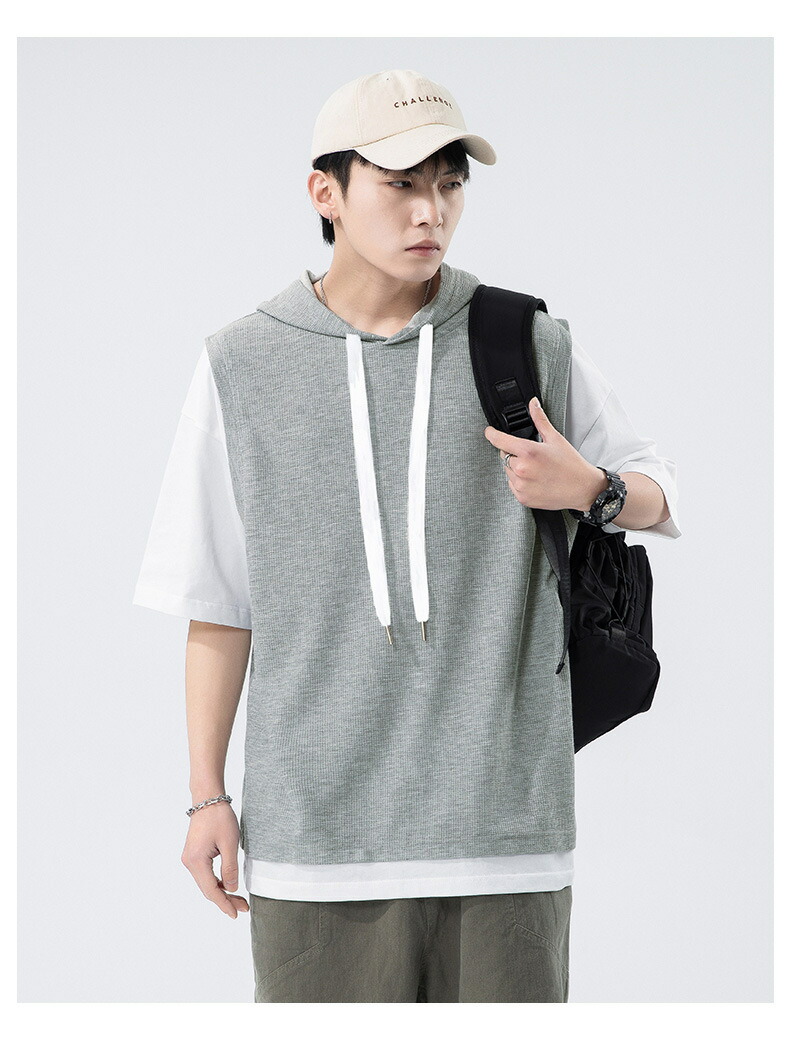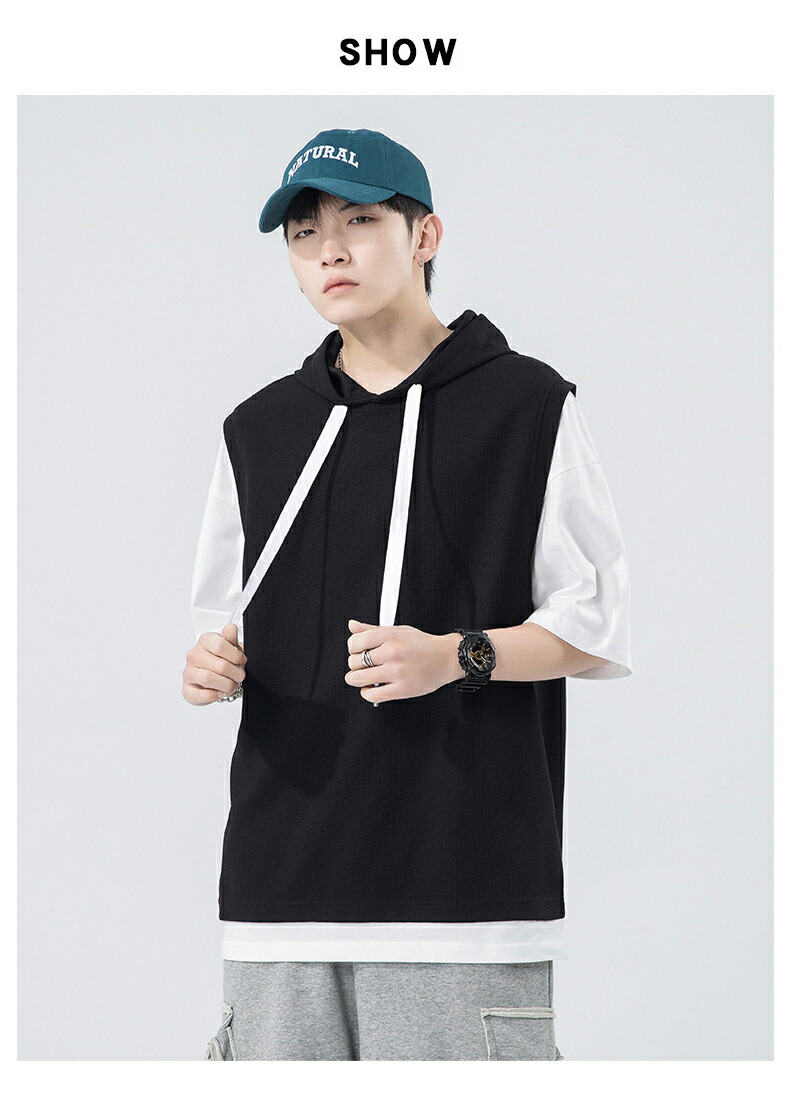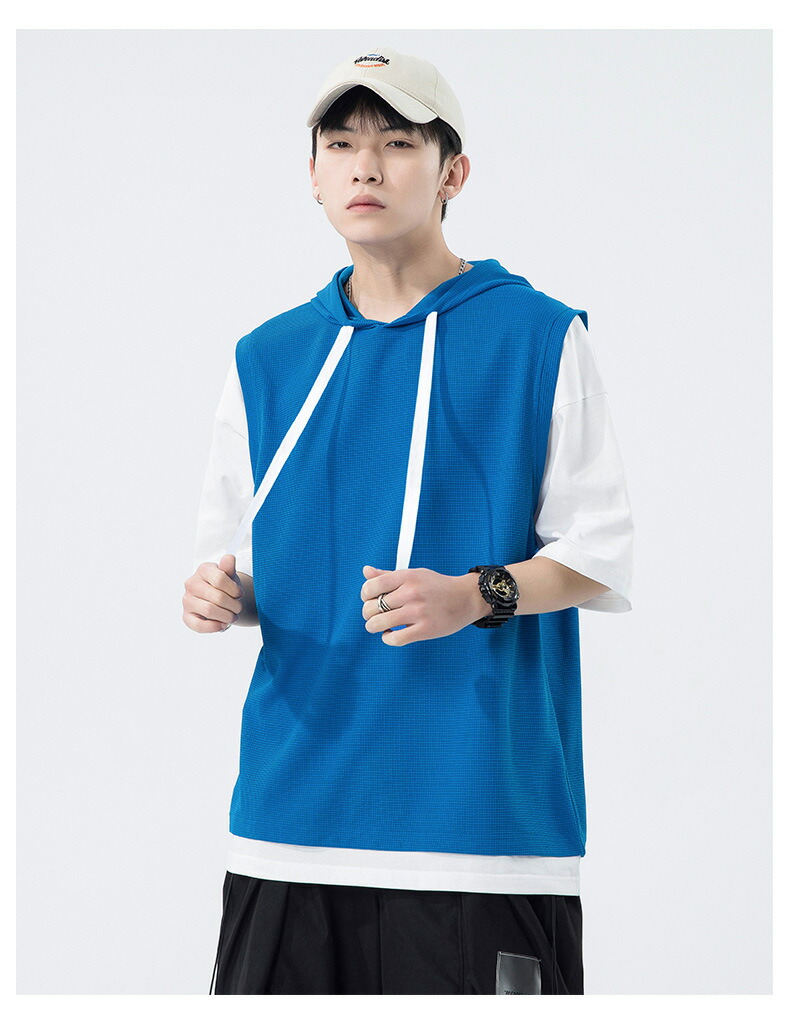 【最大2000円OFF】半袖 パーカー メンズ 夏用 Tシャツ フード付き 五分袖 半袖パーカー 吸汗速乾 プルオーバー 大きいサイズ 青少年 レイヤード風 男性 カジュアル 切り替え トップス 学生 運動 通学 スポーツ ヒップホップ ゆったり おしゃれ メンズファッション