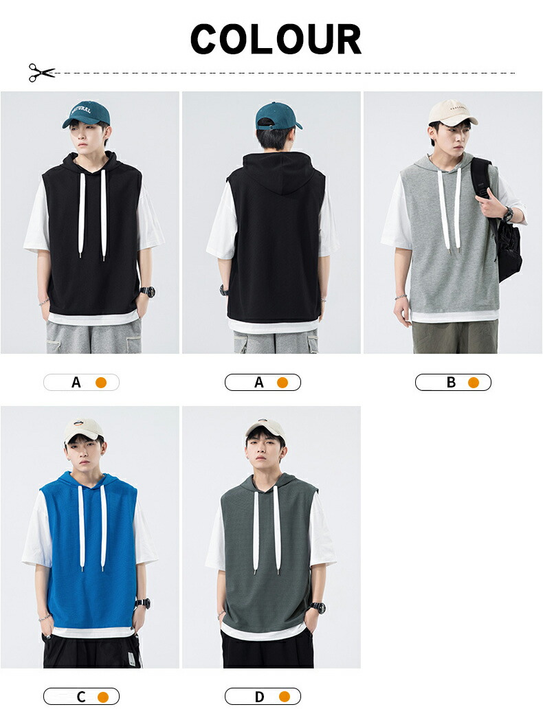 半袖 パーカー メンズ 夏用 Tシャツ フード付き 五分袖 半袖パーカー 吸汗速乾 プルオーバー 大きいサイズ 青少年 レイヤード風 男性 カジュアル 切り替え トップス 学生 運動 通学 スポーツ