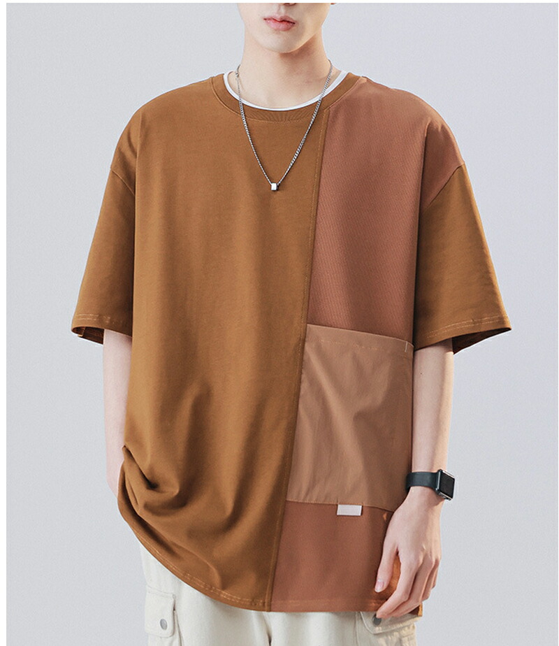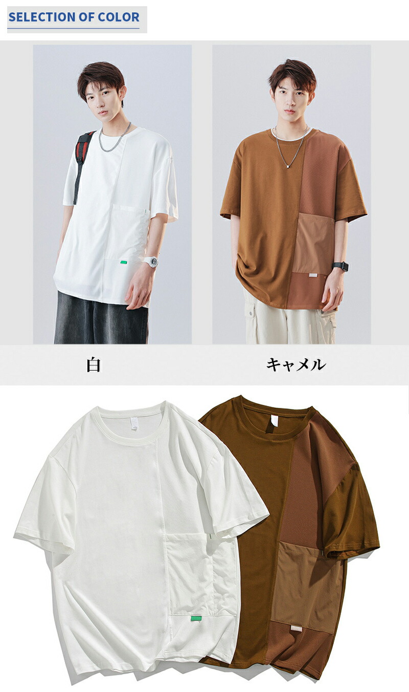 【最大2000円OFF】tシャツ メンズ 半袖 綿100 大きいサイズ カジュアル クルーネック スウェット おしゃれ ポケット付 夏服 快適 カットソー オシャレ デザイン ビッグシルエット 通学 原宿系 トップス アウトドア 20代 30代 ホワイト キャメル メンズファッション