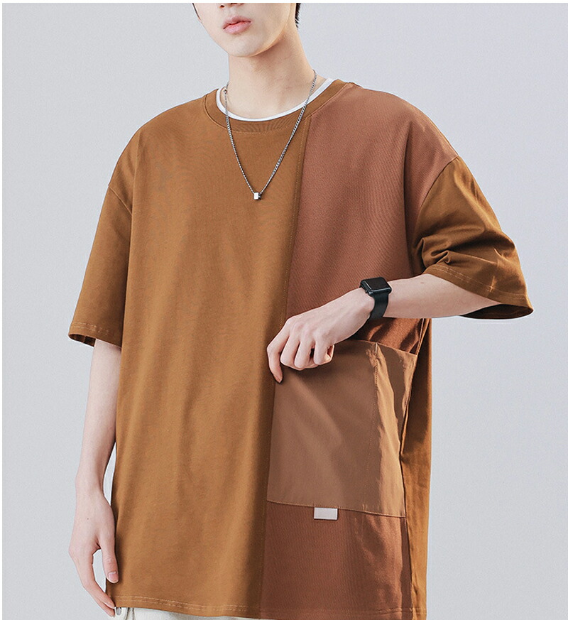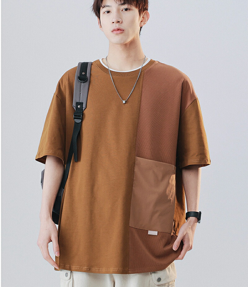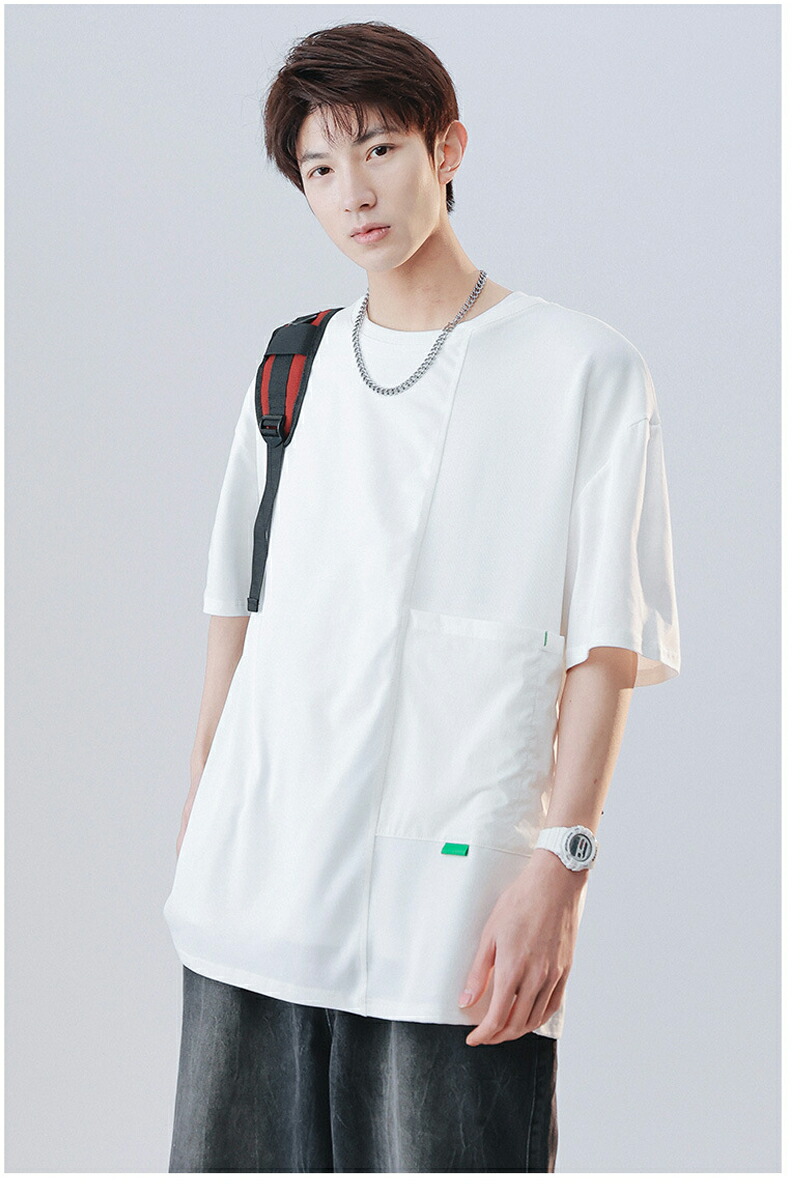 tシャツ メンズ 半袖 綿100 大きいサイズ カジュアル クルーネック スウェット おしゃれ ポケット付 夏服 快適 カットソー オシャレ デザイン ビッグシルエット 通学 原宿系 トップス アウト