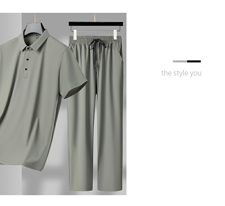 セットアップ メンズ 夏 半袖 長ズボン 上下セット スウェット 冷感 ポロシャツ ロングパンツ 大きいサイズ Tシャツ ボトムス カジュアル ゴルフ 運動 ビジネス テニス サッカー トレーニング