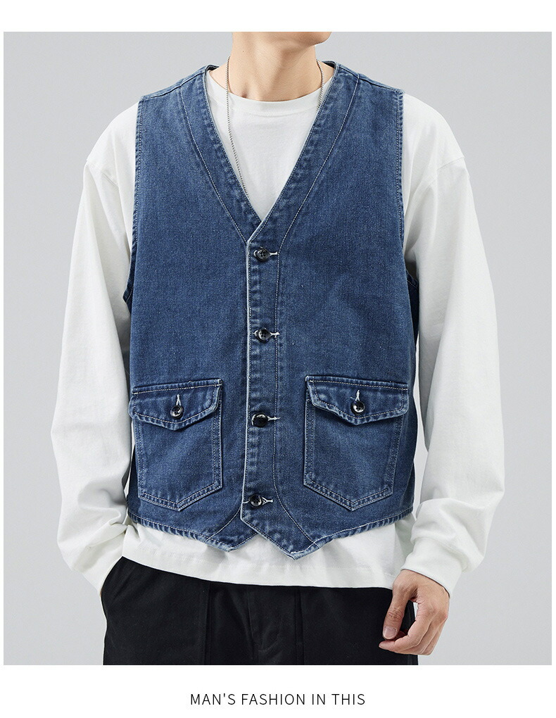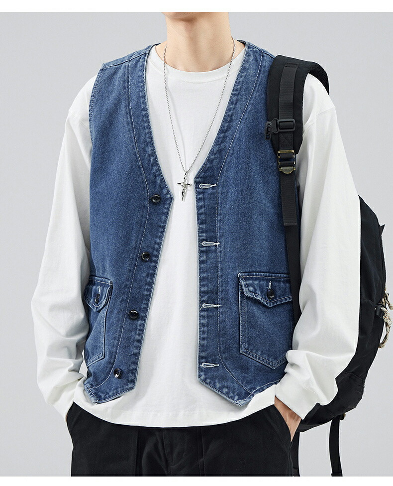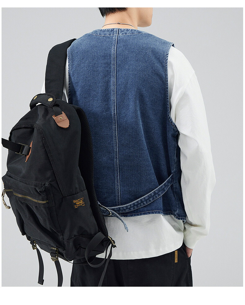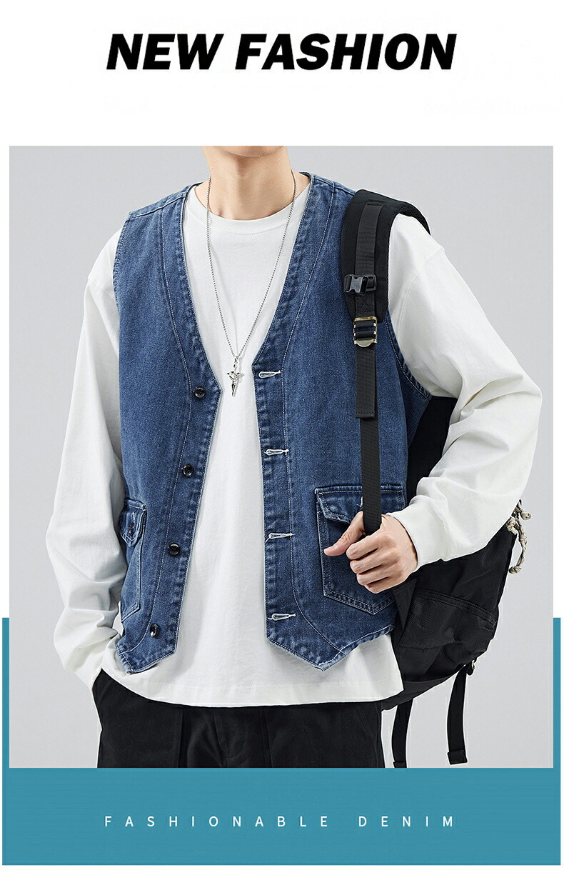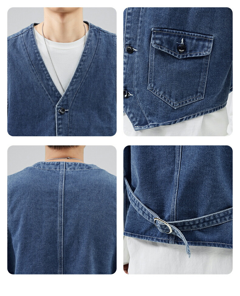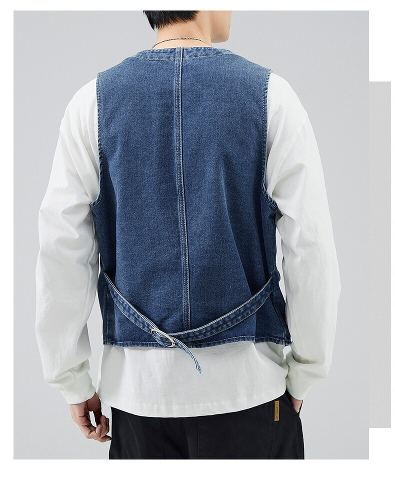 デニム ベスト メンズ サマーベスト 春夏 Vネック 前開き メンズベスト ボタン 調整紐 アウトドア ヴィンテージ 多機能ベスト カジュアル チョッキ キャンプ おしゃれ 軽量 ポケット付き Gジャ