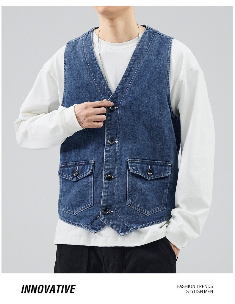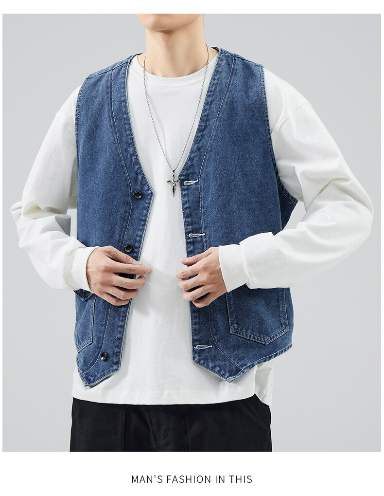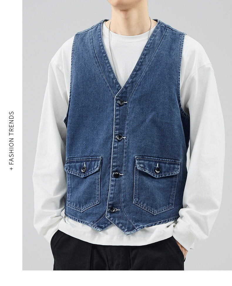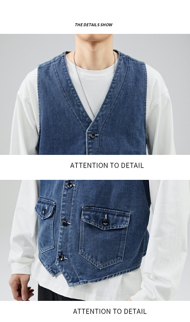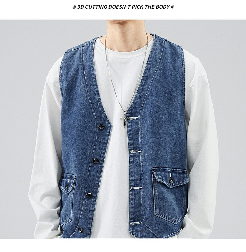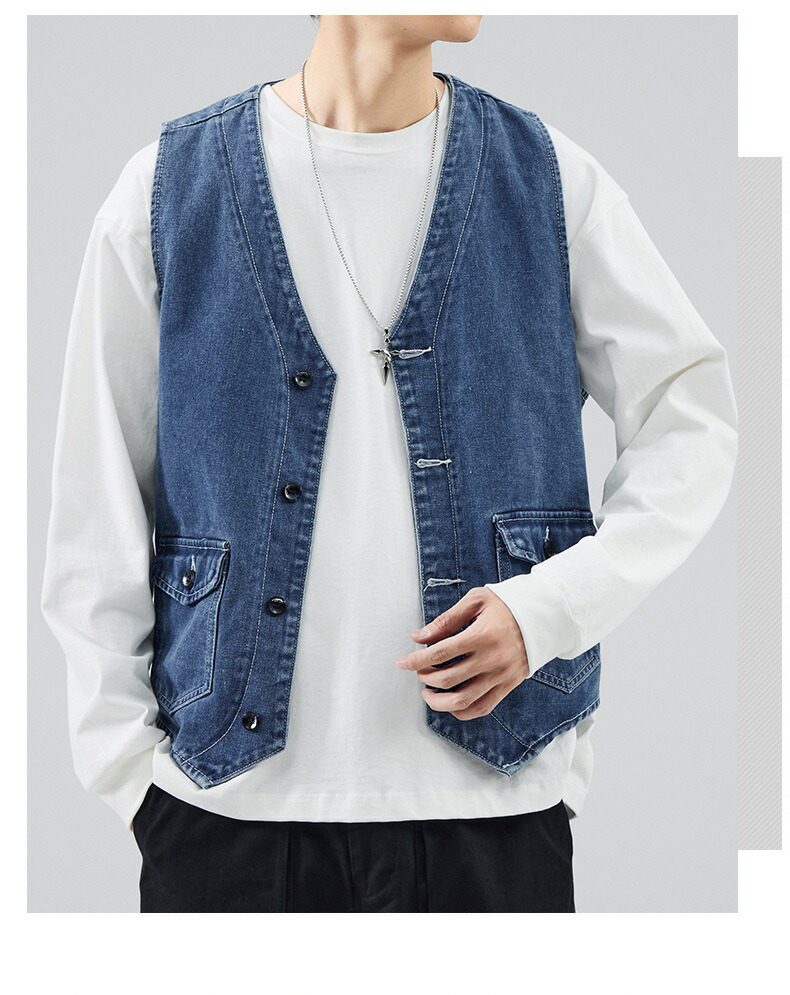 デニム ベスト メンズ サマーベスト 春夏 Vネック 前開き メンズベスト ボタン 調整紐 アウトドア ヴィンテージ 多機能ベスト カジュアル チョッキ キャンプ おしゃれ 軽量 ポケット付き Gジャ