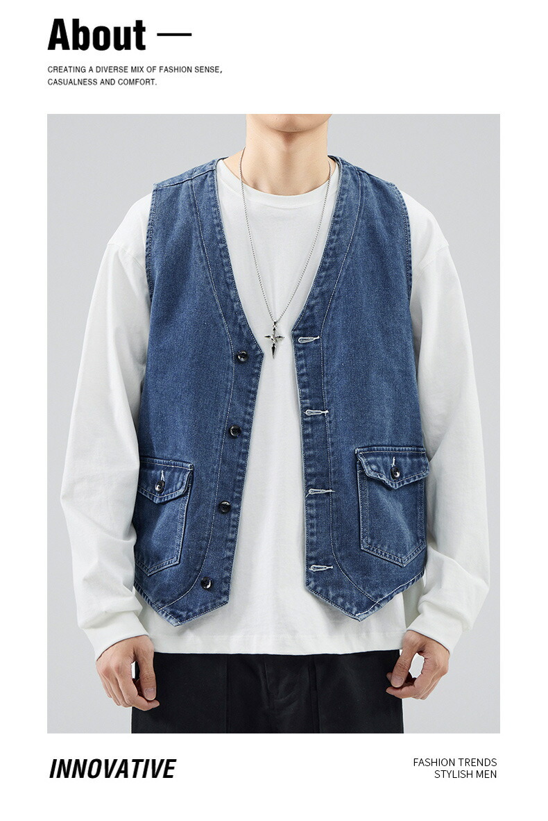 【送料無料】メンズ ベスト デニム ノースリーブ ゆったり 春 夏 カジュアルベスト メンズ アウター ゴルフ アメカジ 重ね着 男性 通勤 通学 かっこいい 旅行 彼氏 ブルー M L XL 2XL