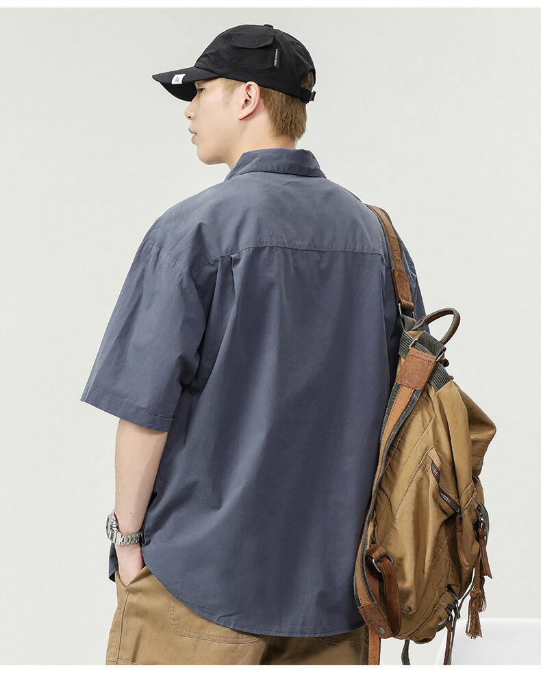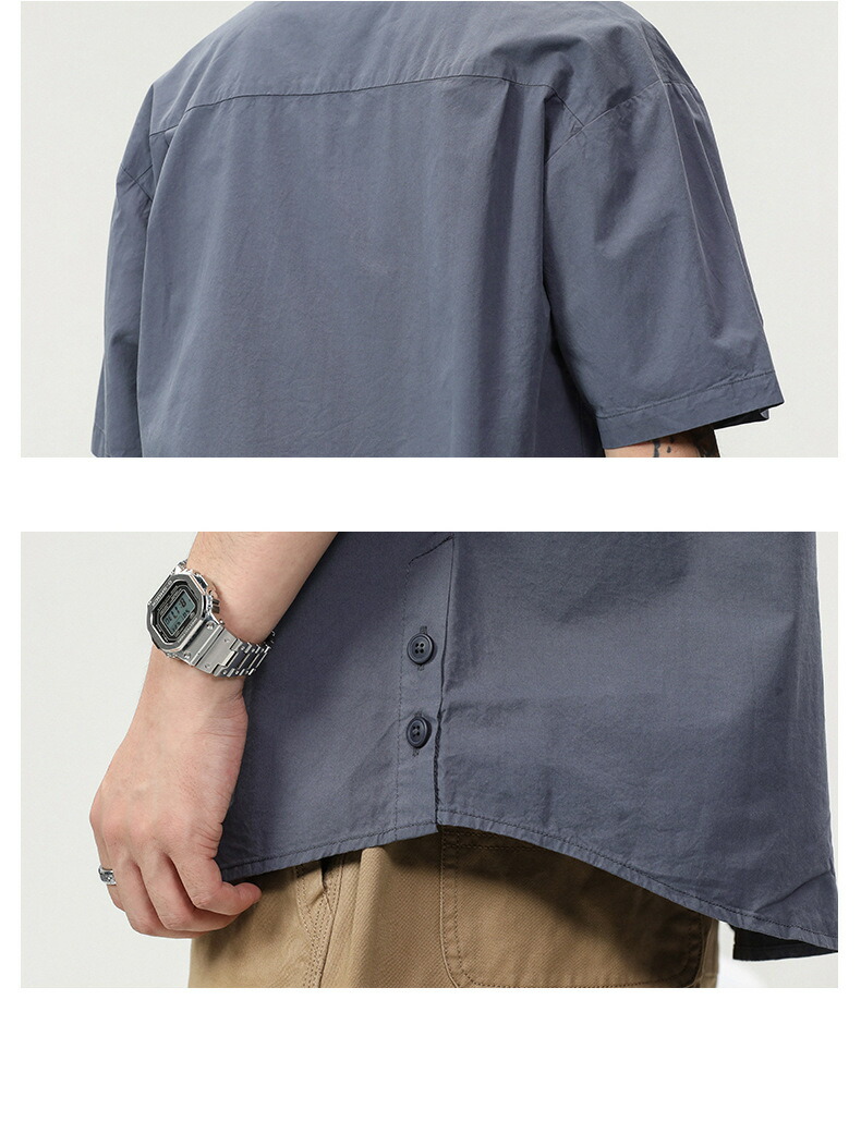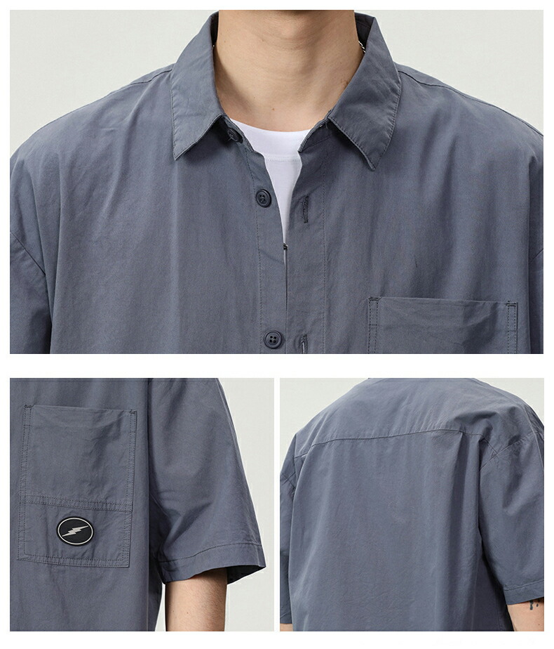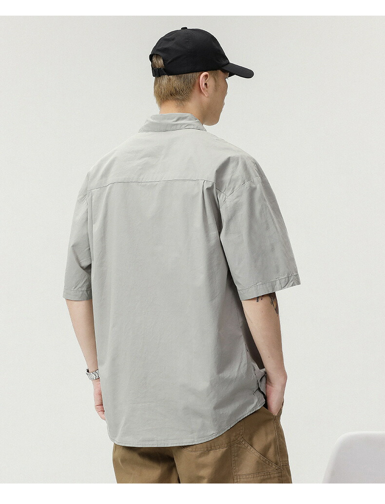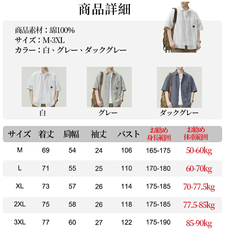★送料無料★半袖シャツ カジュアル 五分袖 ワークシャツ お洒落 コットン ビッグシルエット おしゃれ かっこいい 無地 アウター ホワイト グレー ダークグレー M/L/XL/2XL/3XL
