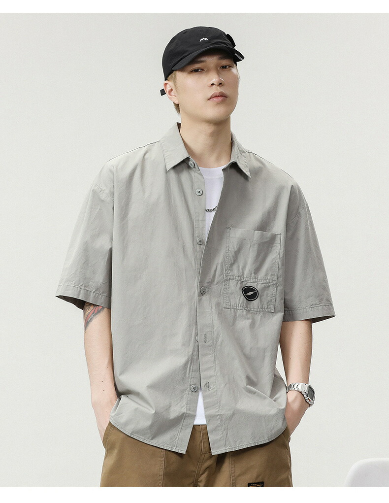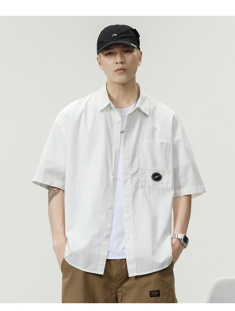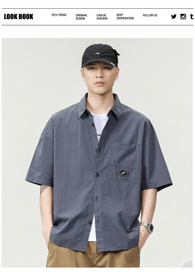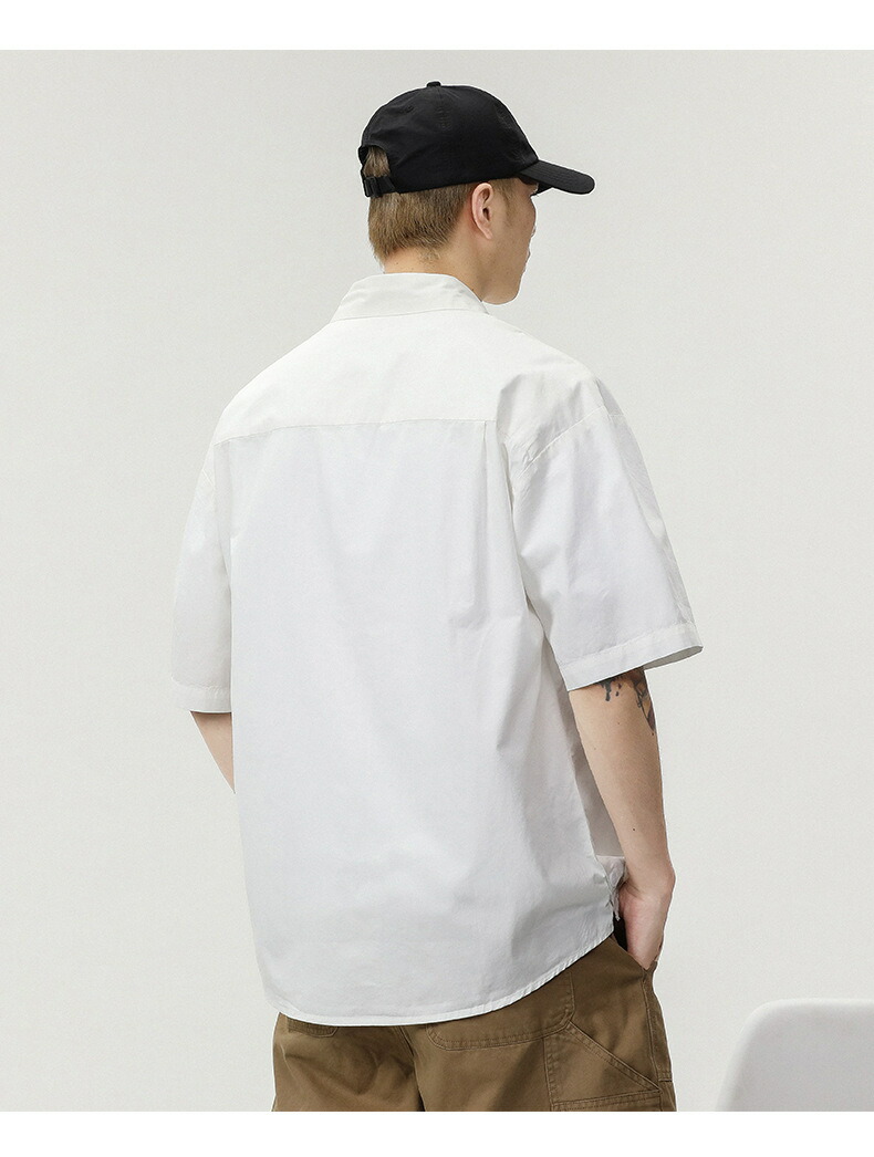 ★送料無料★半袖シャツ カジュアル 五分袖 ワークシャツ お洒落 コットン ビッグシルエット おしゃれ かっこいい 無地 アウター ホワイト グレー ダークグレー M/L/XL/2XL/3XL