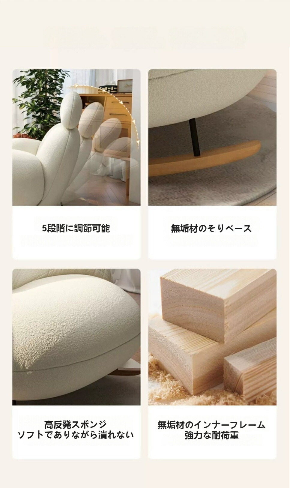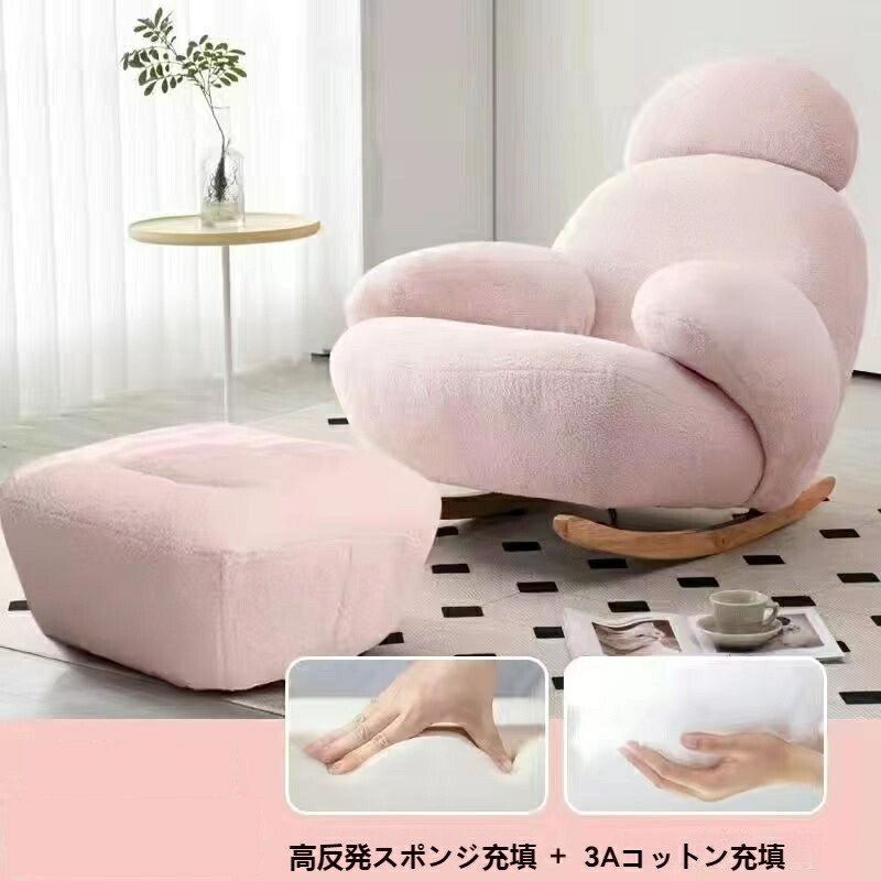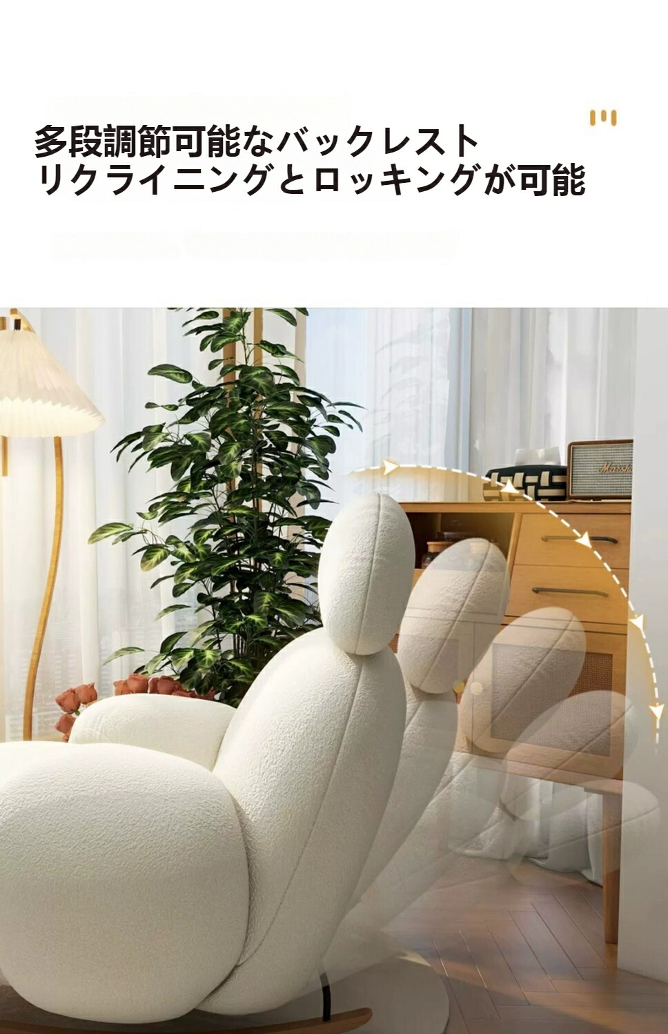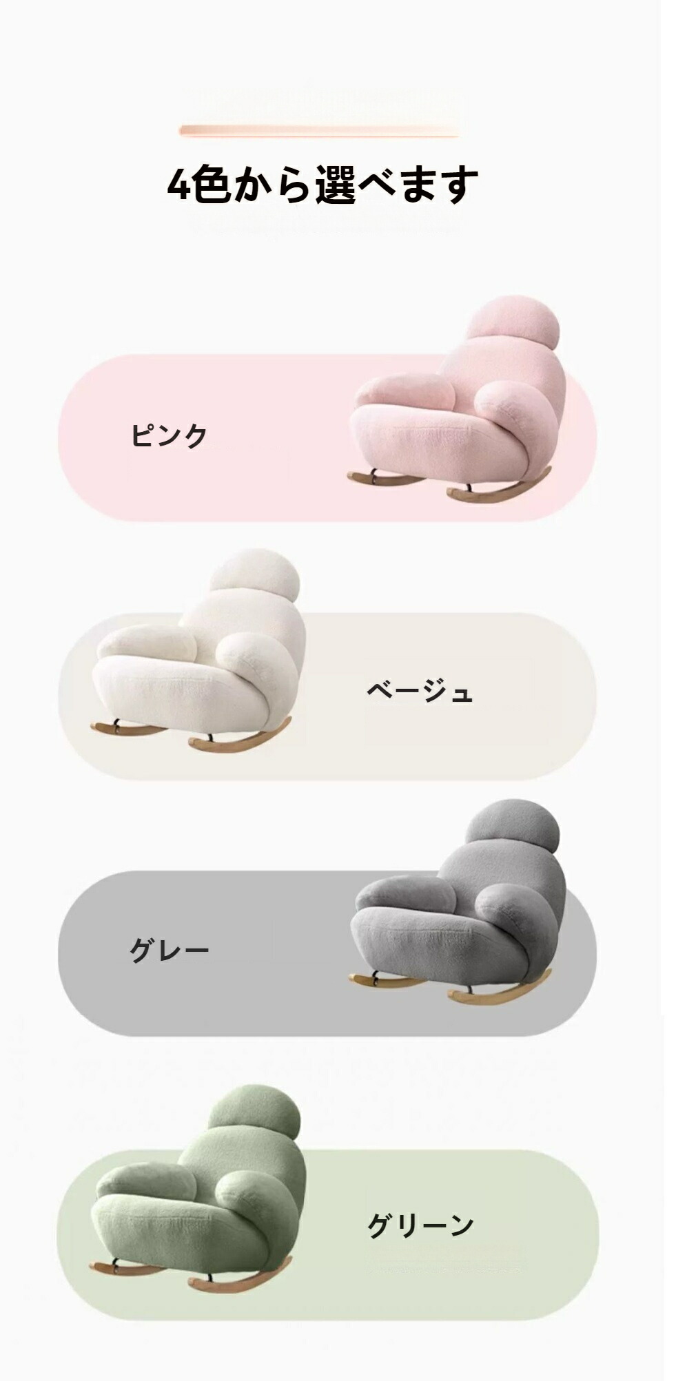 ロッキングチェア 座椅子リクライニング ホワイト グレー ピンク