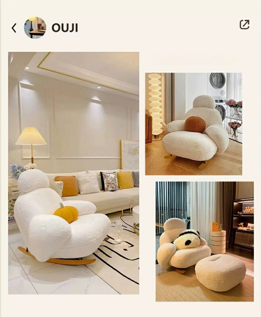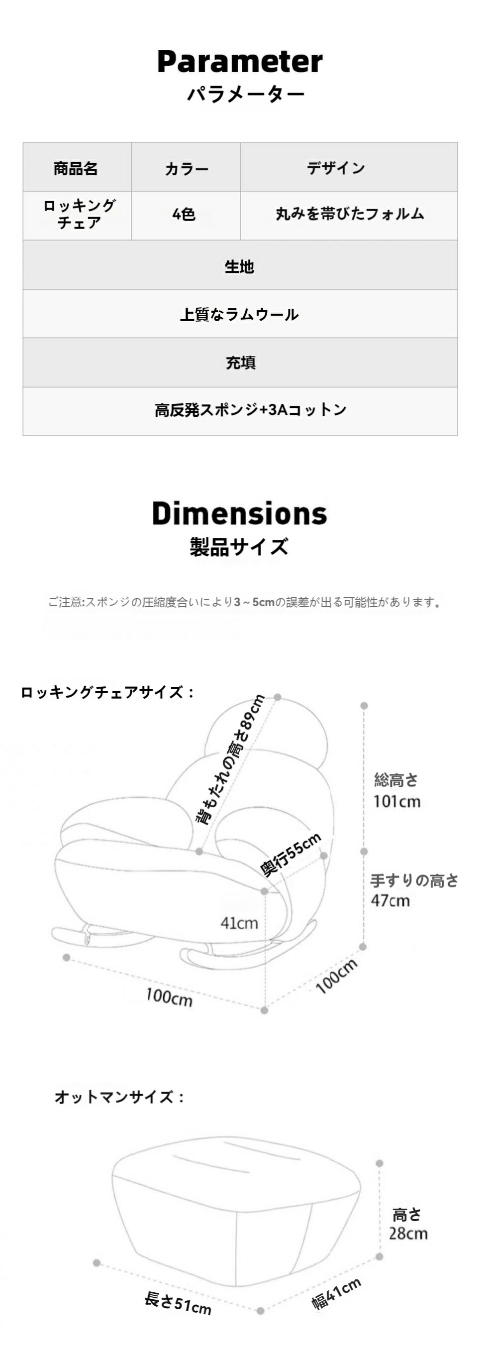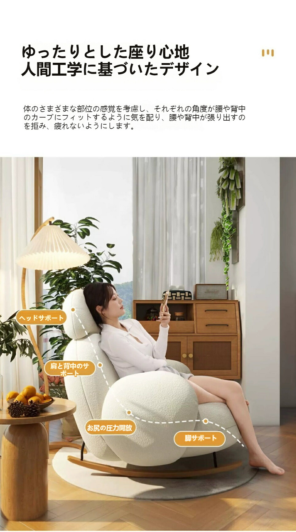 ロッキングチェア 座椅子リクライニング ホワイト グレー ピンク