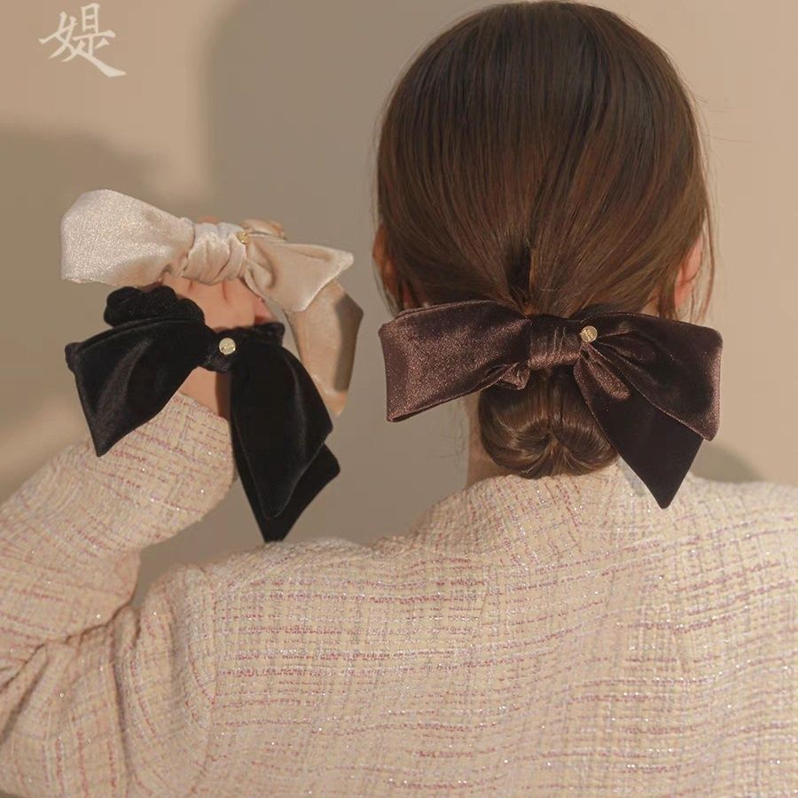 シュシュ リボン リボンシュシュ レビ レディースジュエリー アクセサリー ヘアアクセサリー シュシュ 豊富な品揃え ブラック ブラウン ベージュ 3枚