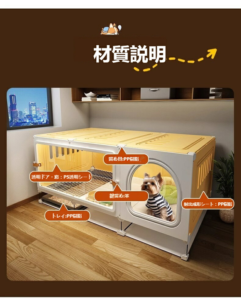 犬小屋 ペット 犬用クレート 小型犬 犬用品 犬小屋 ケージ ゲート ハウス 犬小屋 続々登場 イエロー グレー 70*45*45 105*45*45 140*45*45