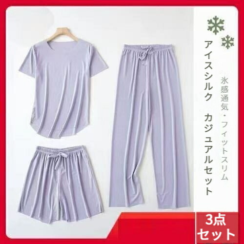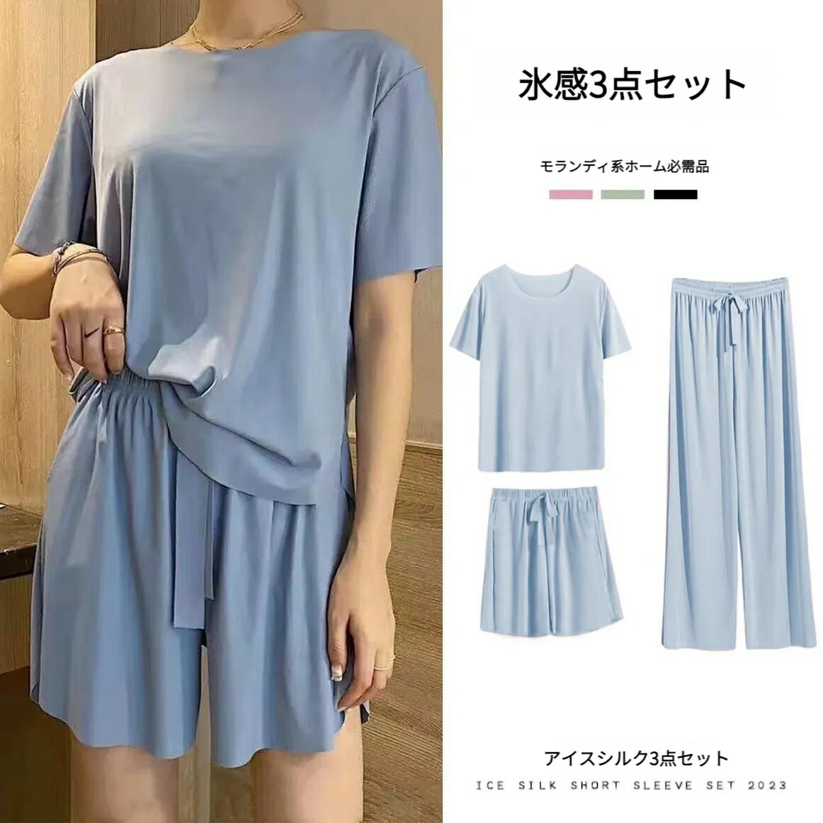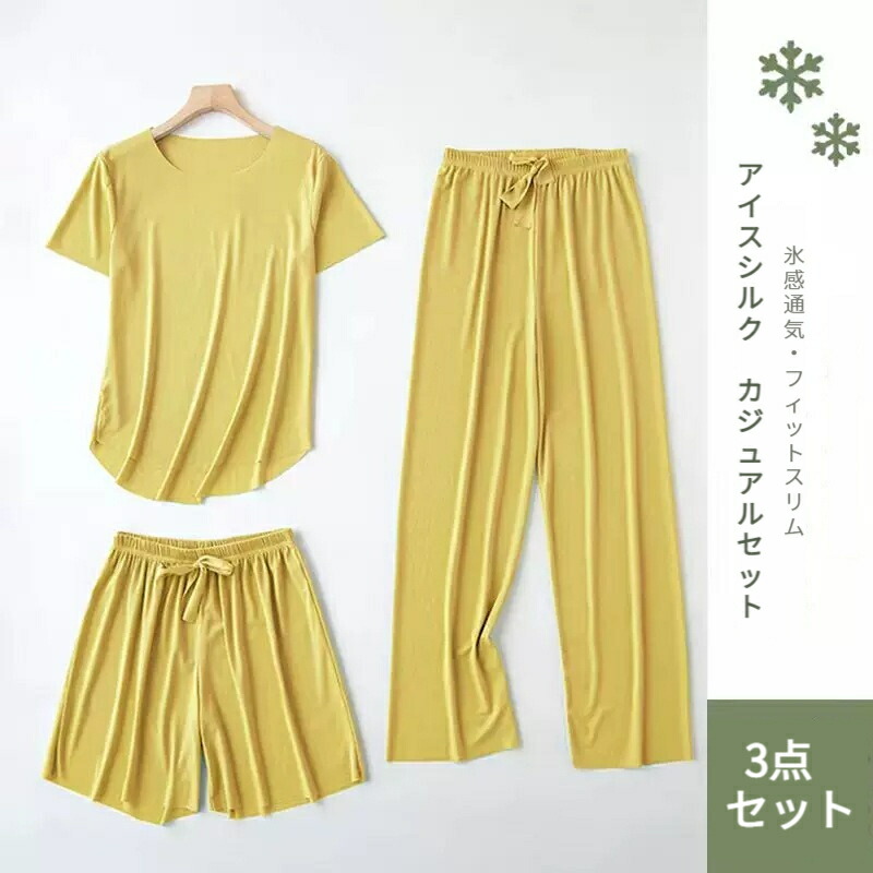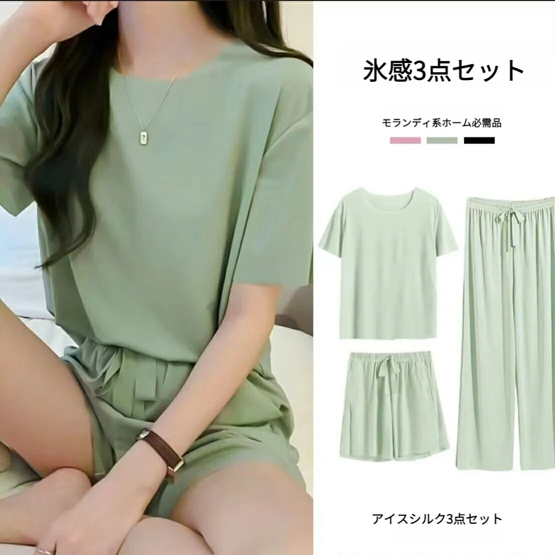パジャマ レディース 半袖 3点セット レディース ナイトウェア ルームウェア パジャマ 31%Off ブラック グリーン ピンク ブルー イェロー パープル 杏色