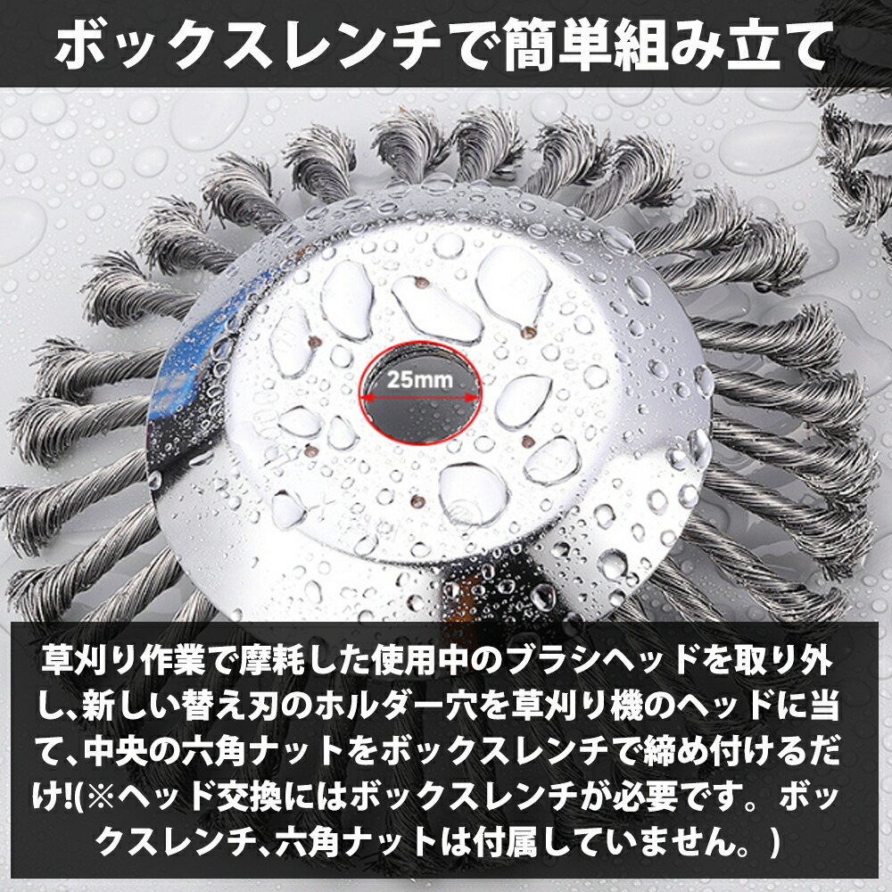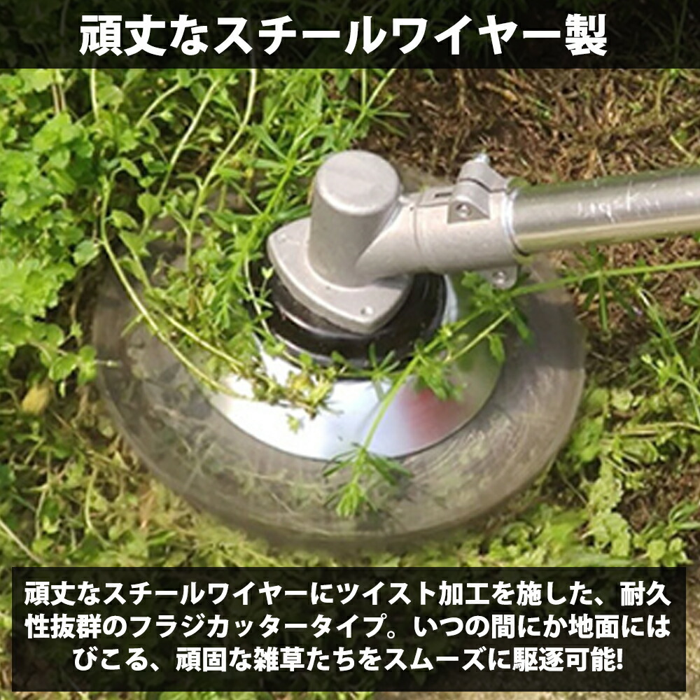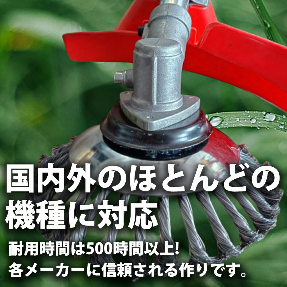 材質:草刈り機ヘッド 高品質スチールワイヤー製 硬く、耐久性に優れ、鋭利なため長期間使用可能
