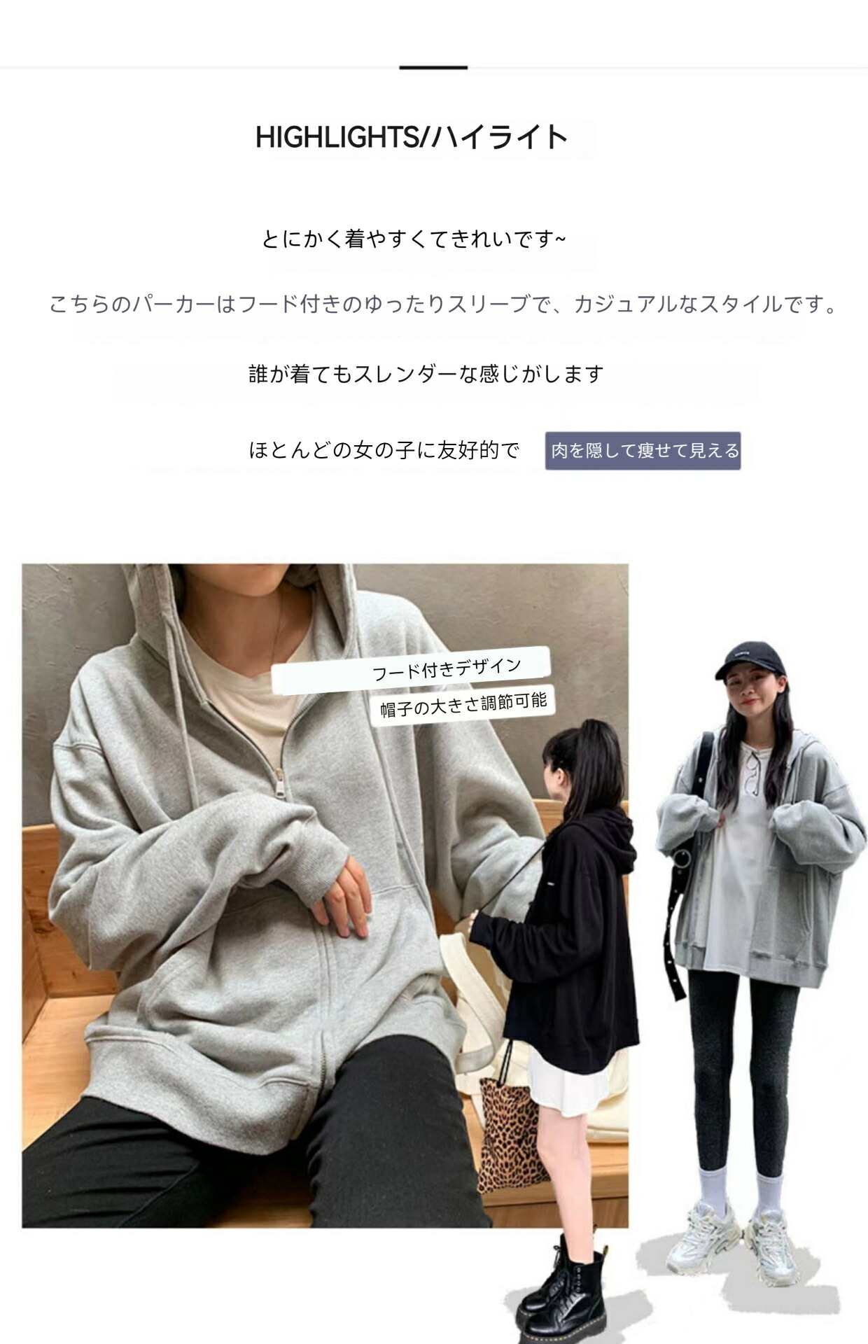 パーカー ジップアップ 長袖 フード付 トップス スウェット トレーナー 特集 ブラック ライトグレー ブラック(裏起毛) ライトグレー(裏起毛) M(40-45kg) L(45-50kg) XL(50-57.5kg) 2XL(57.5-65kg) 3XL(65-75kg) 4XL(75-82.5kg)