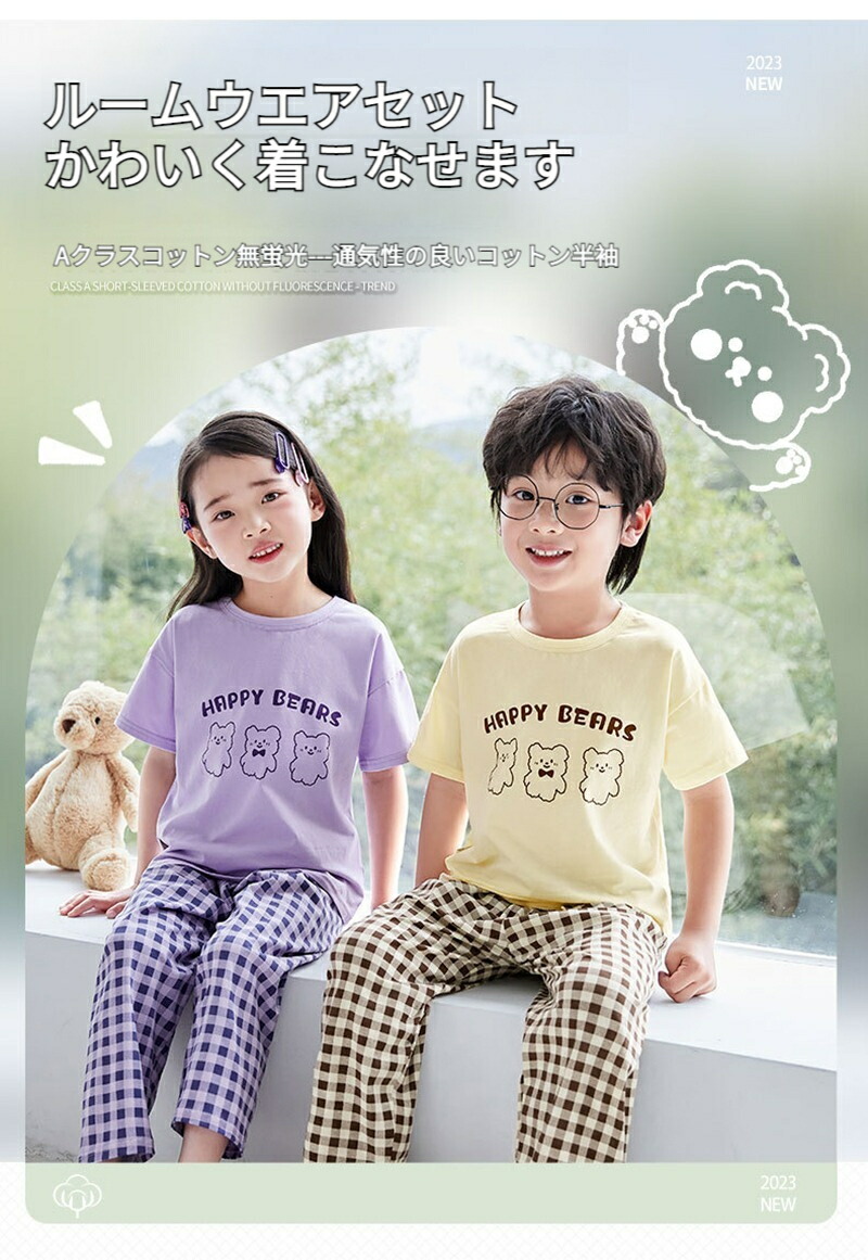 キッズパジャマ 半袖 長ズボン 子供 キッズ ベビー マタニティ 続々入荷中 ブルー ベージュ パープル オレンジ ピンク グリーン 100cm 110cm 120cm 130cm 140cm 150cm 160cm 170cm 180cm