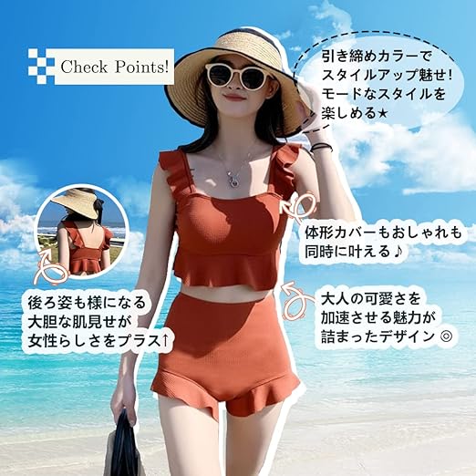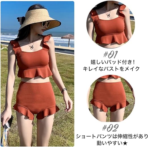 レディース 水着 ビスチェビキニ フリ レディースファッション 新作 ブラック オレンジ M L XL