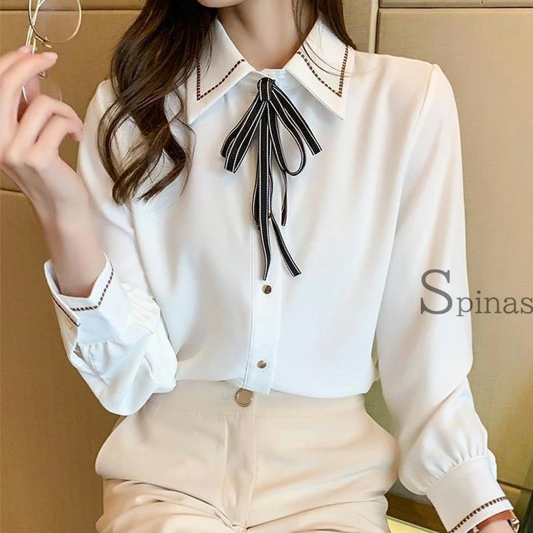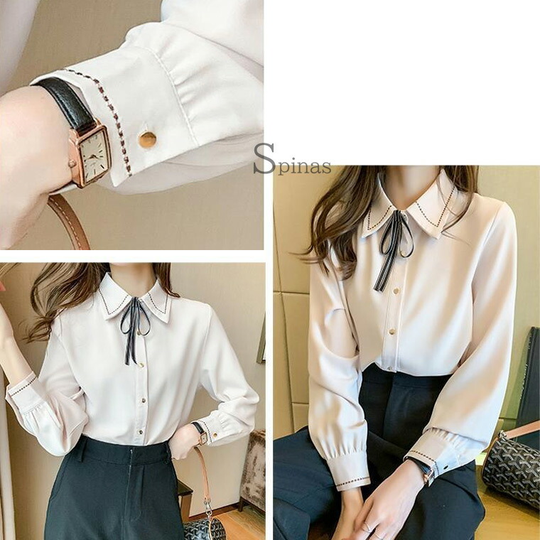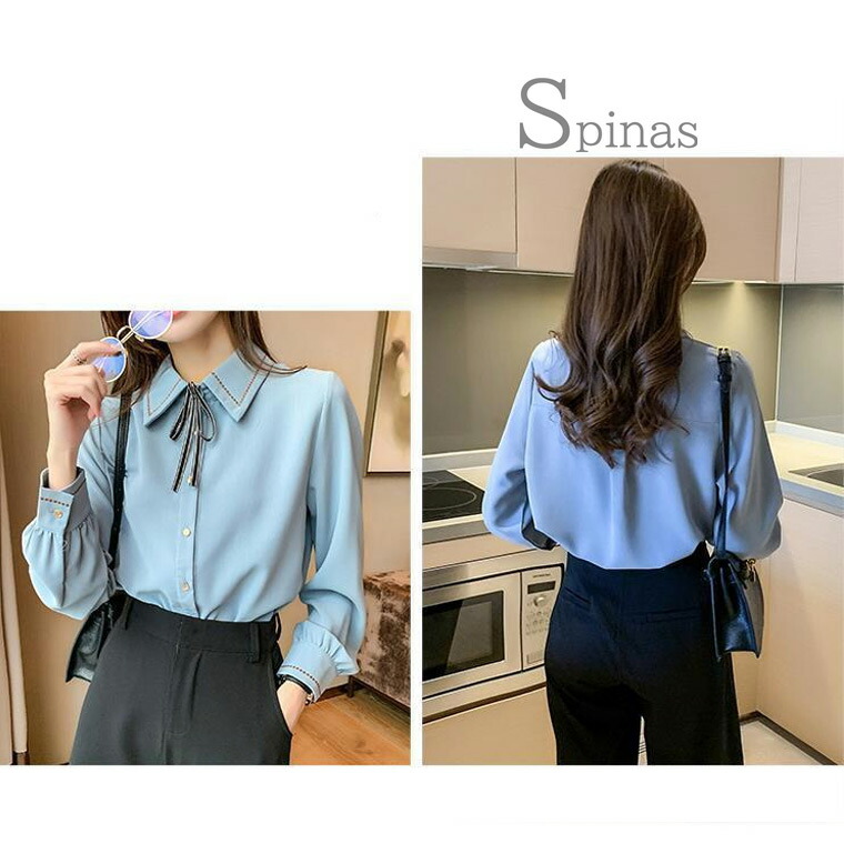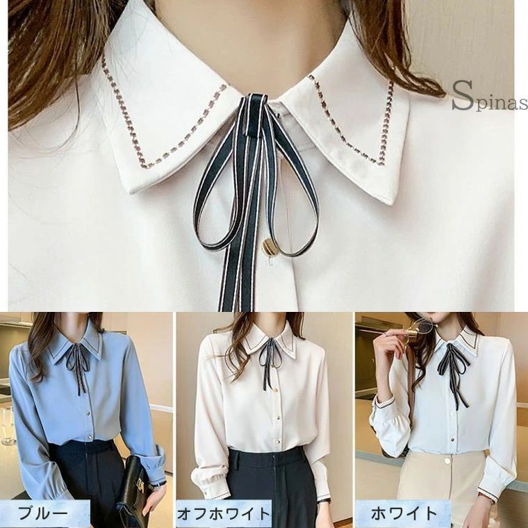 上品で高見え お嬢様ブラウス リボン付 トップス シャツ ブラウス 42%Off ホワイト オフホワイト ブルー S M L XL 2XL 3XL