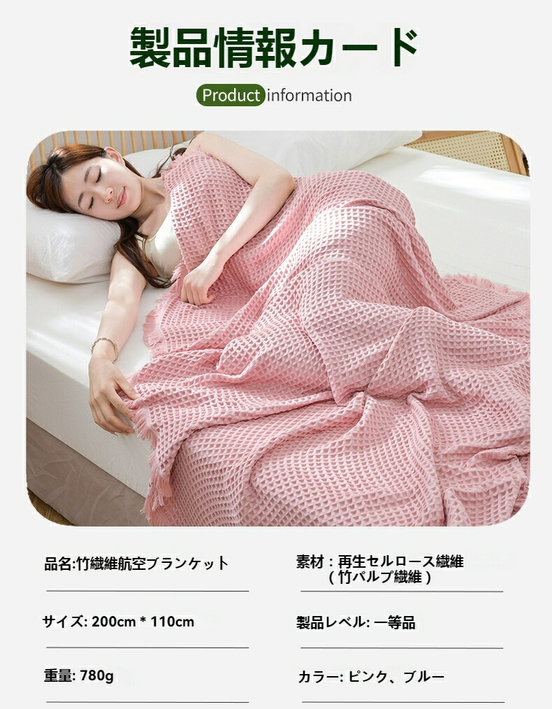 竹繊維100% 冷感 ブランケット 2 寝具 毛布 ブランケット 豊富な品揃え ピンク ブルー