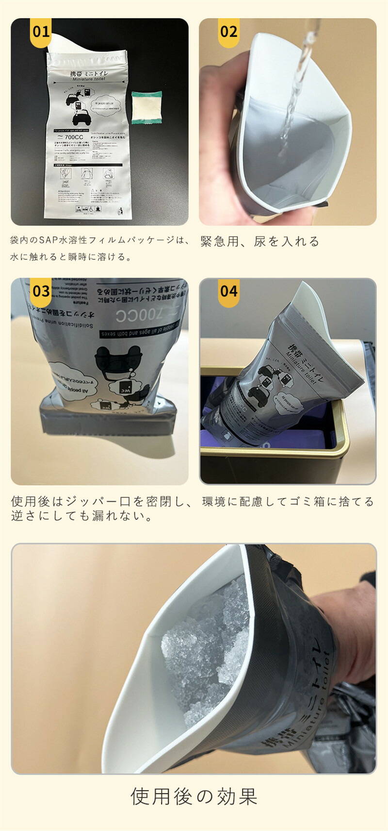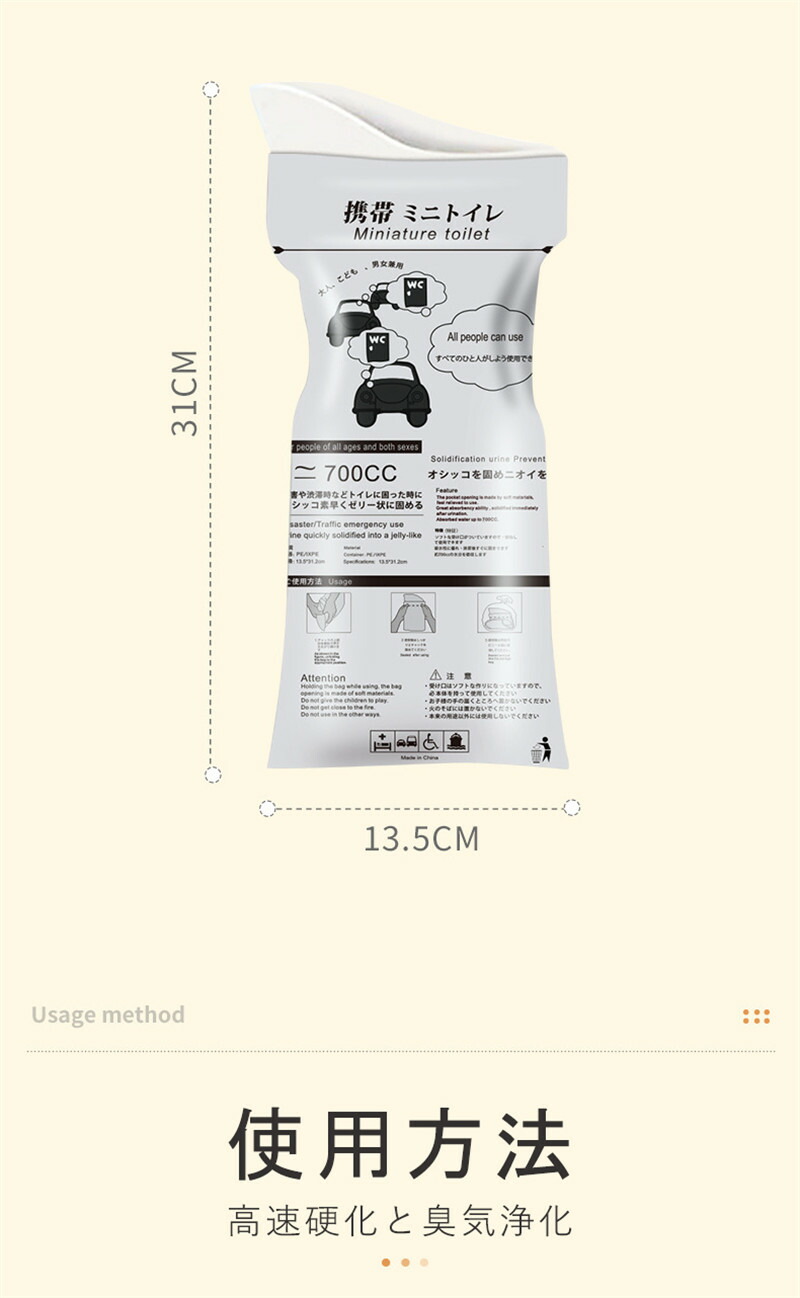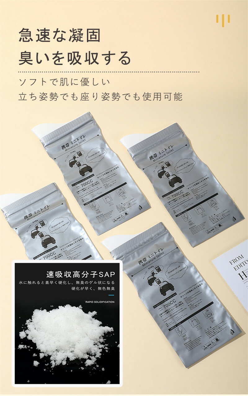 ポータブル尿パック 防災グッズ 緊急 SAP顆粒 吸水コットンシート