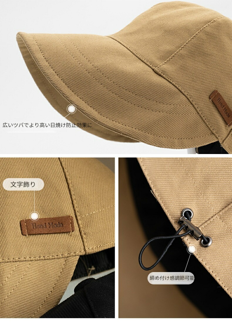 生地 コットンシルクカラー ブラック、カーキ、ベージュ、ライトブルーサイズ 調節可能54~58cm機能 日焼け防止、通気性、遮光