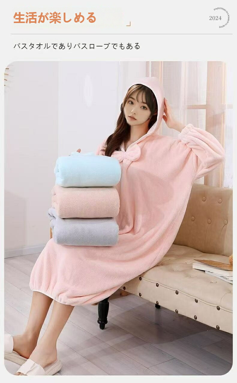 バスタオル 着るタオル 着る タオル 湯上り ワンピース リボン付き バスローブ タオルワンピース ビーチタオル ナイトウェア レディース 風呂上がり プレ