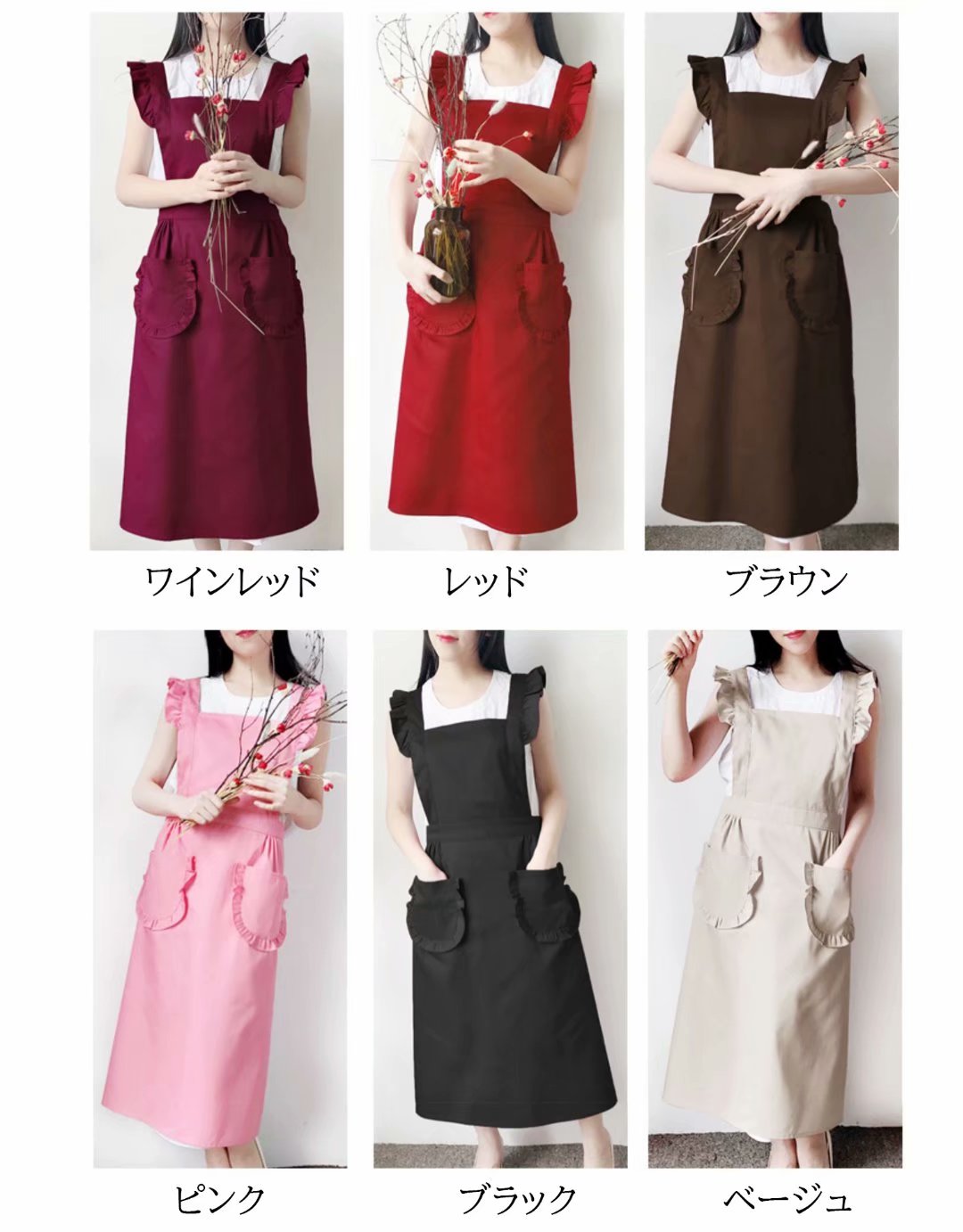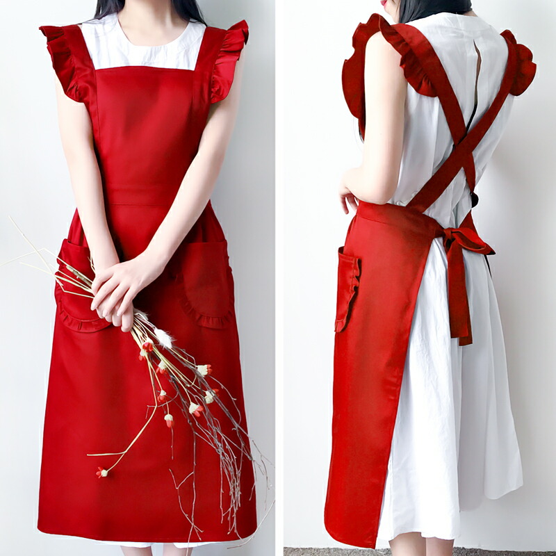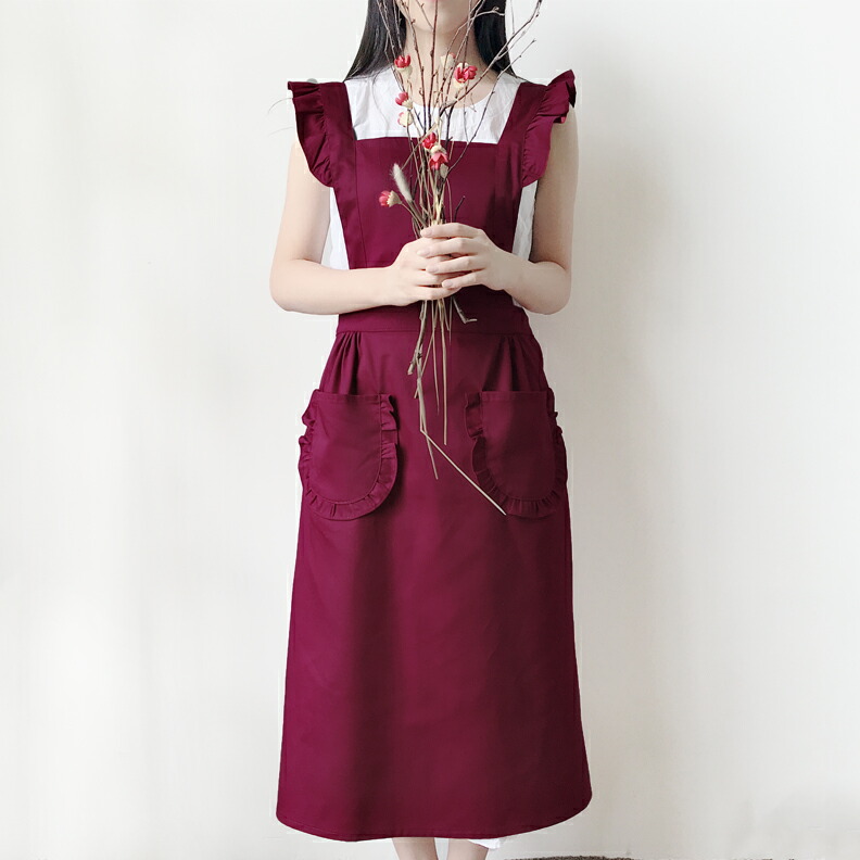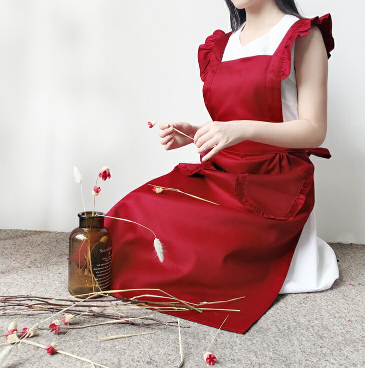 フリルが可愛い メイド風 エプロン ひ 配膳用品 キッチンファブリック エプロン 三角巾 エプロン 割引 ブラック ワインレッド レッド ピンク ベージュ ブラウン
