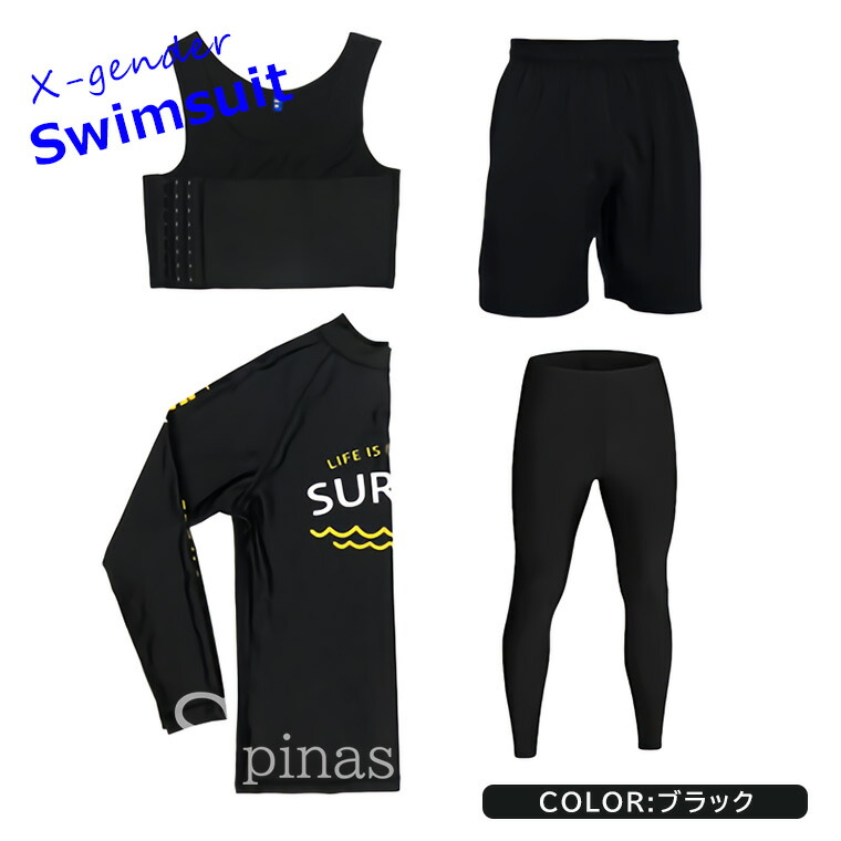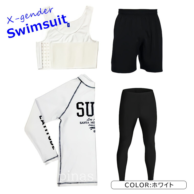 胸を平らに見せる水着4点セット 胸つぶ 水着 お買い得 ホワイト ブラック S M L XL XXL