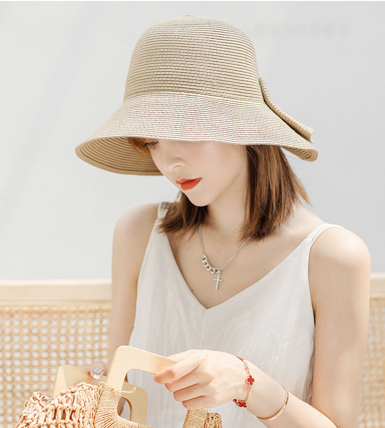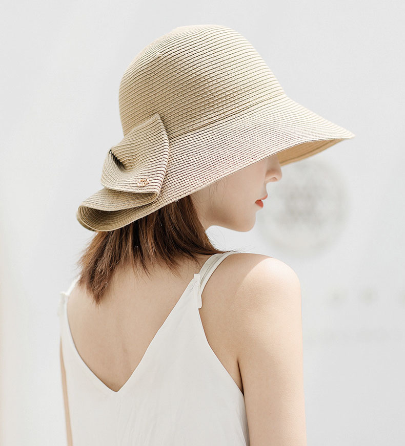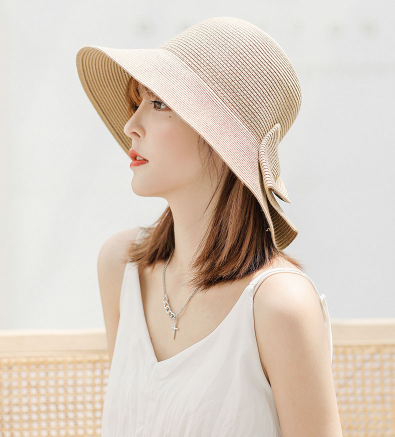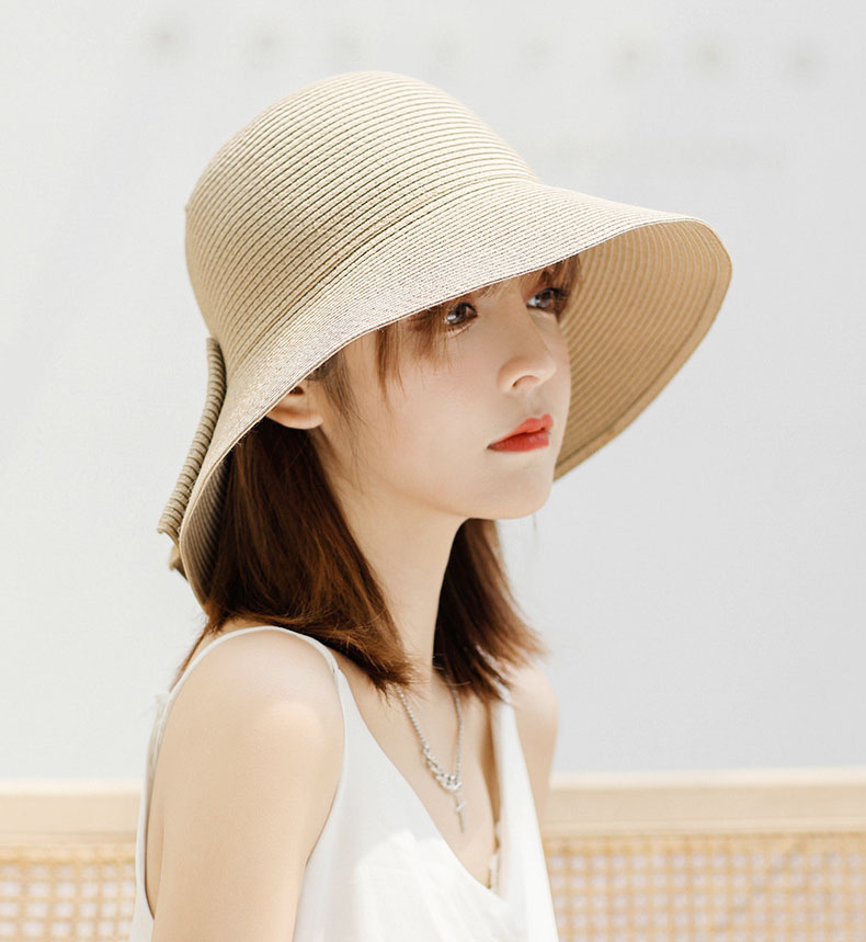 大きめリボンがポイント 麦わら ハット 折りたたみ UV サマー 大人っぽい ストロー キャップ 夏帽子 通気 つば広帽子