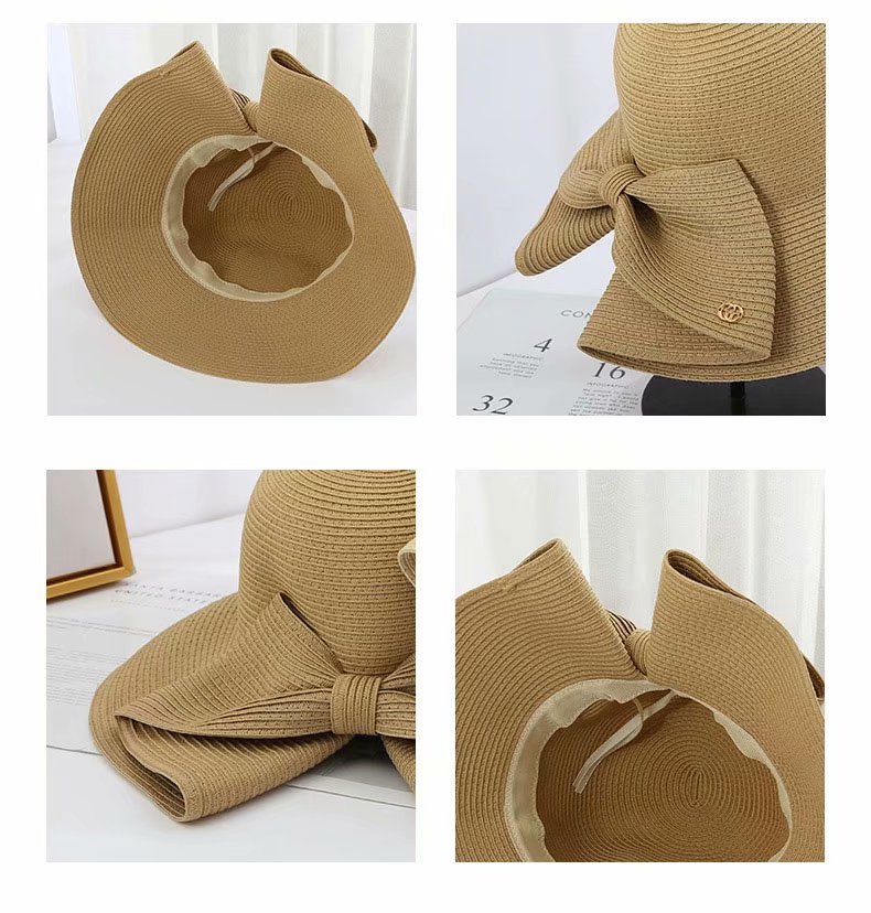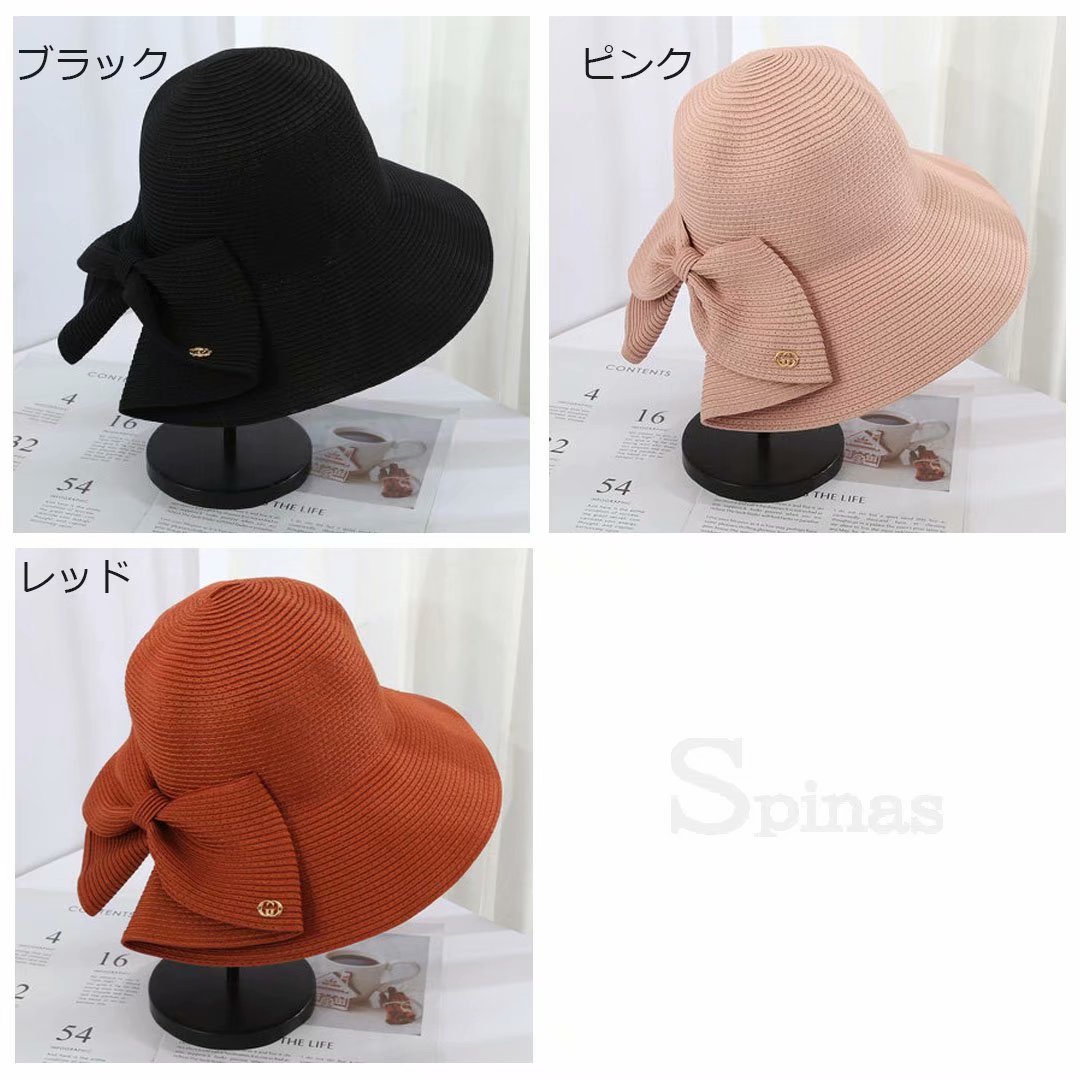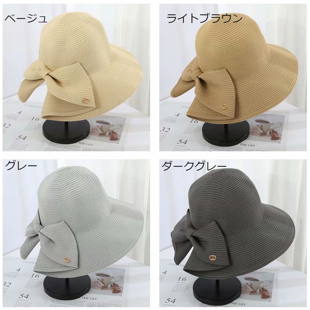 大きめリボンがポイント!麦わら ハット 折りたたみ UV サマー 大人っぽい ストロー キャップ 夏帽子 通気 つば広帽子