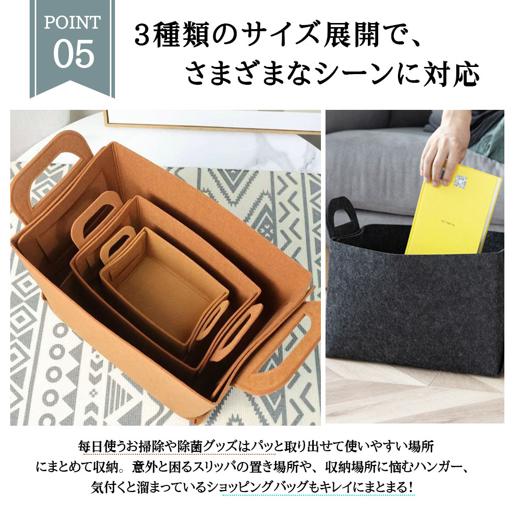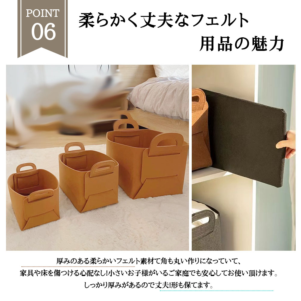 フェルト収納かご 3 個セット 収納ボ グレー ブラウン