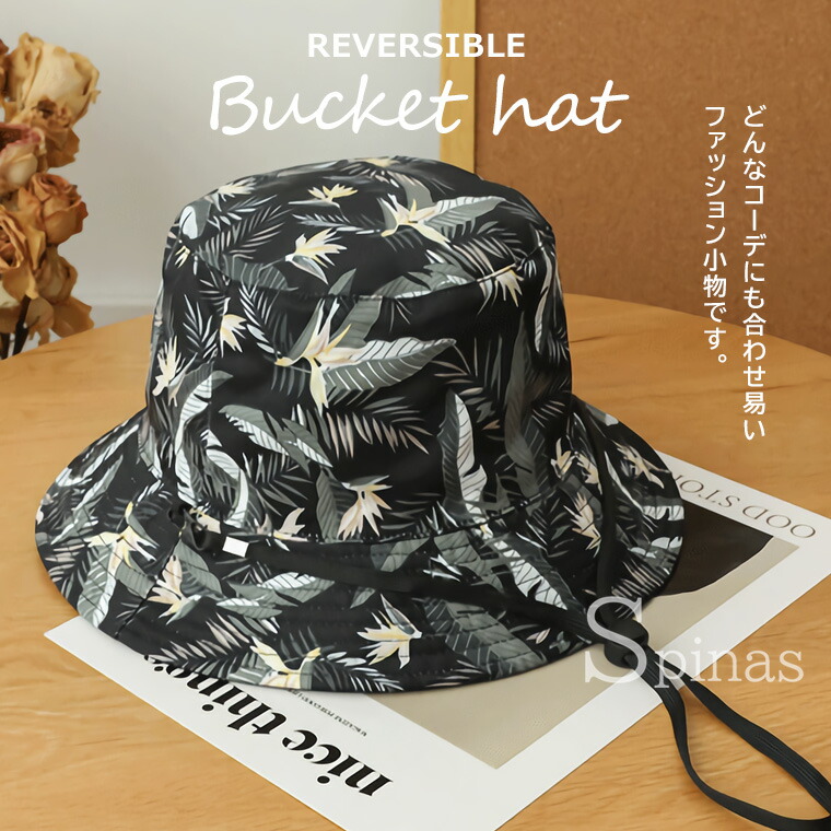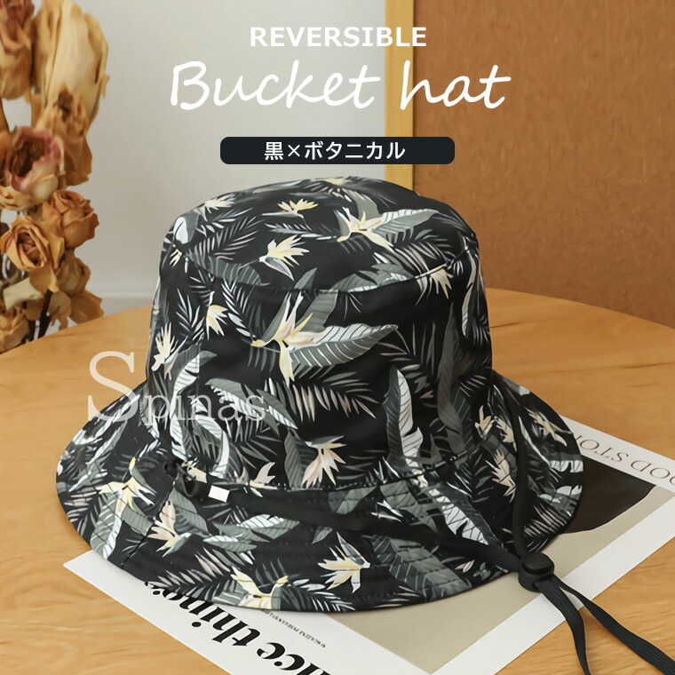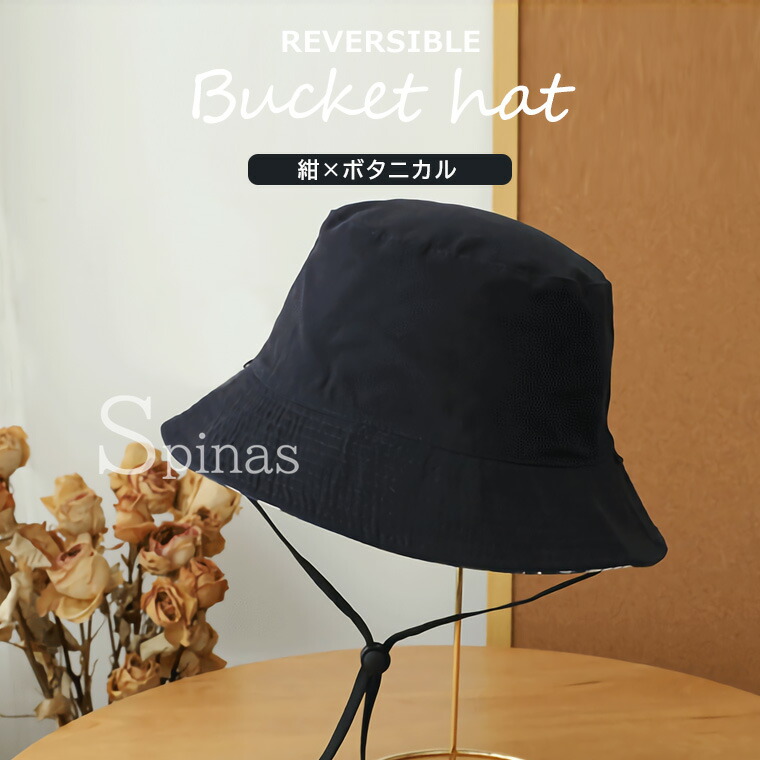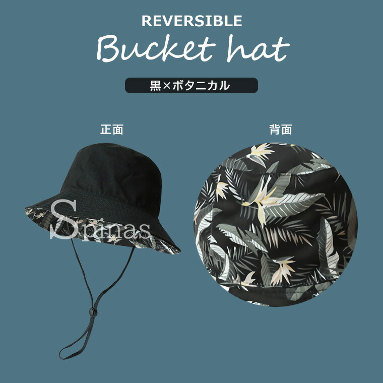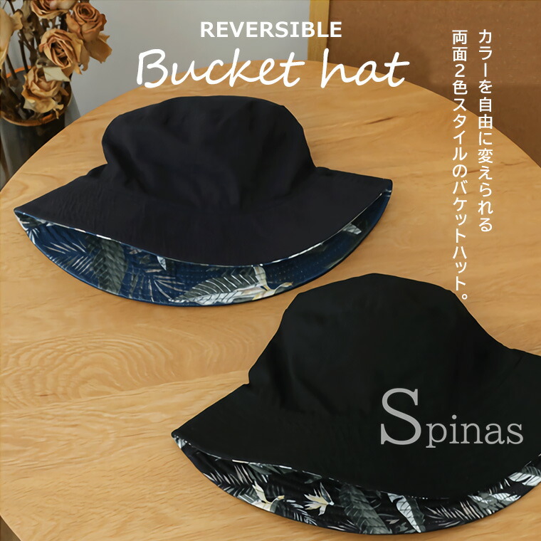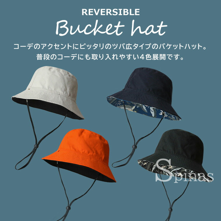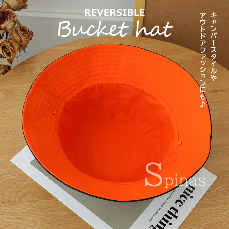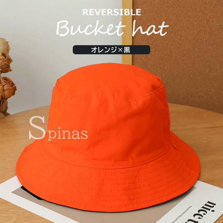 バケットハット リバーシブル つば広 バッグ 小物 ブランド雑貨 お買い得 頭囲57-60cm 頭囲61-65cm オレンジ×ブラック 白×ブラック 紺×ボタニカル ブラック×ボタニカル