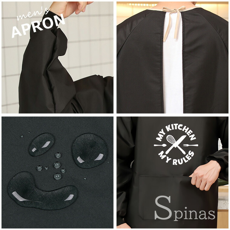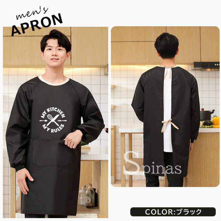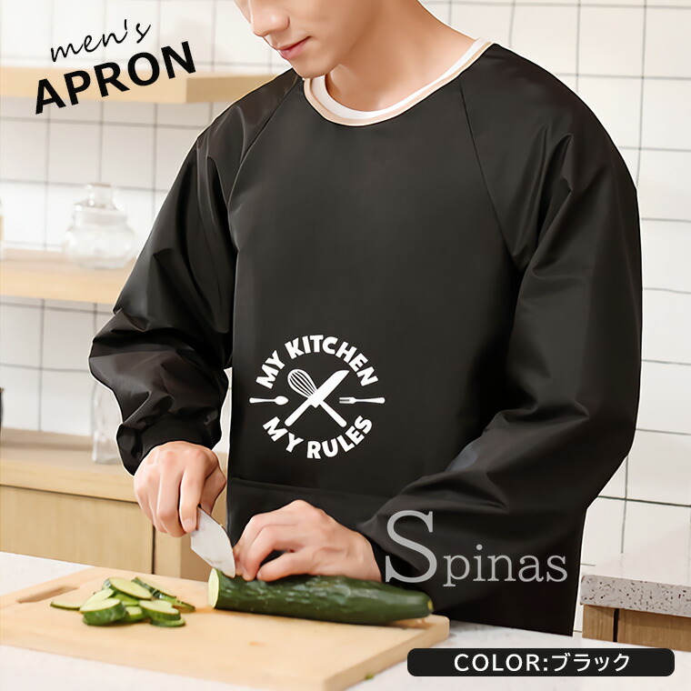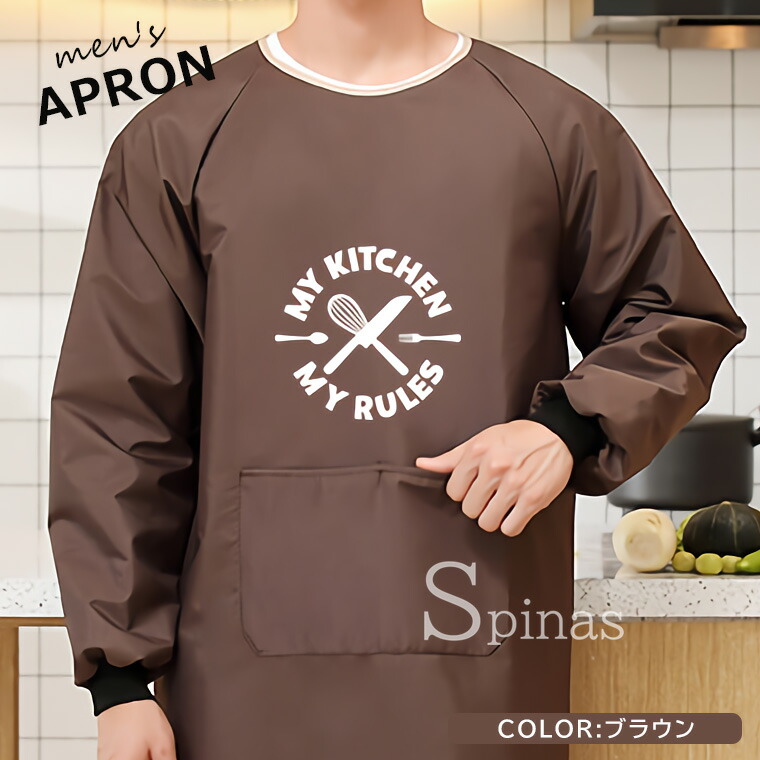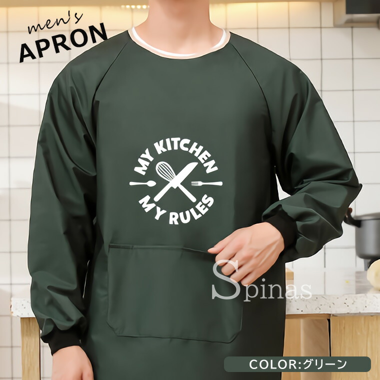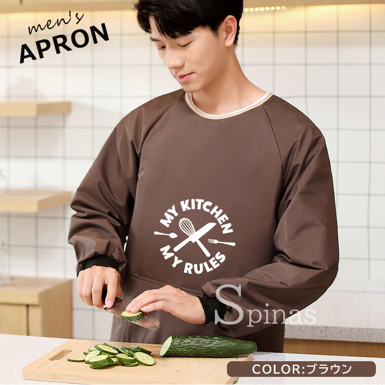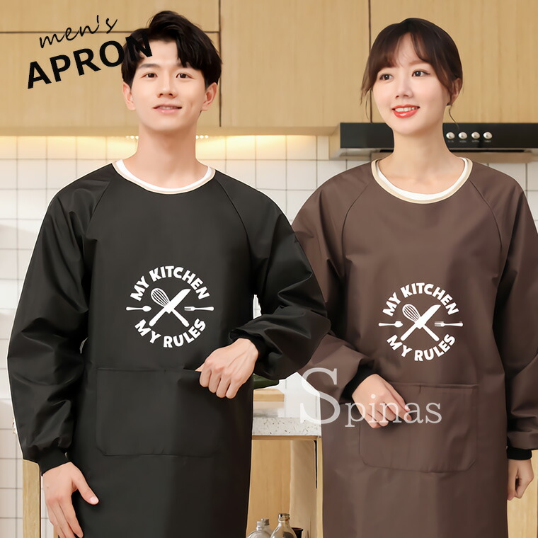 カトラリー柄のメンズ用防水エプロン♪ キッチン用品 食器 調理器具 割引 ブラウン ブラック グリーン L(Mサイズ相当) XL(Lサイズ相当)