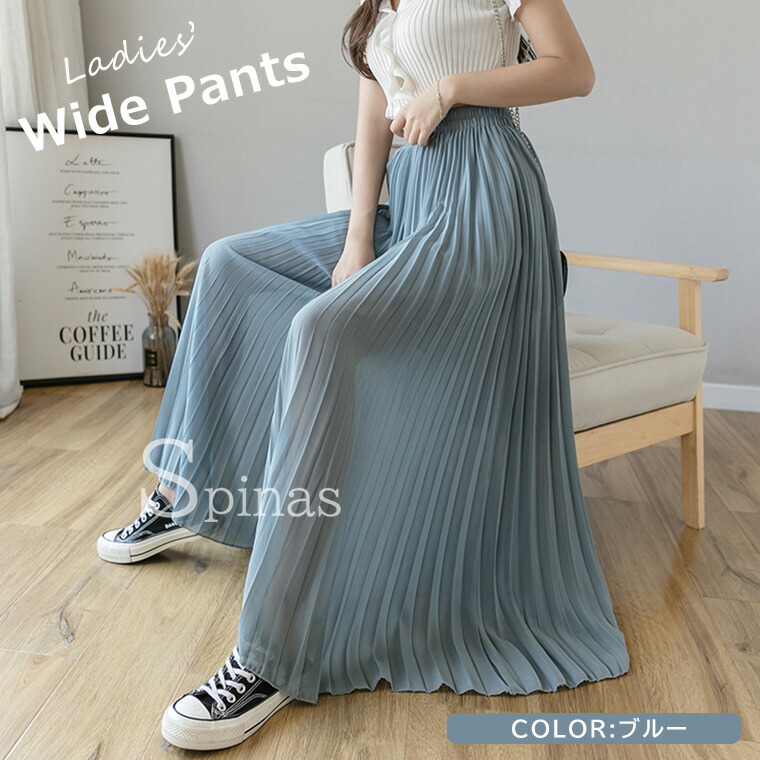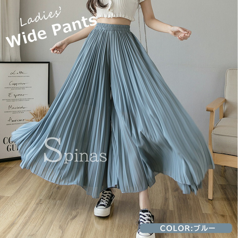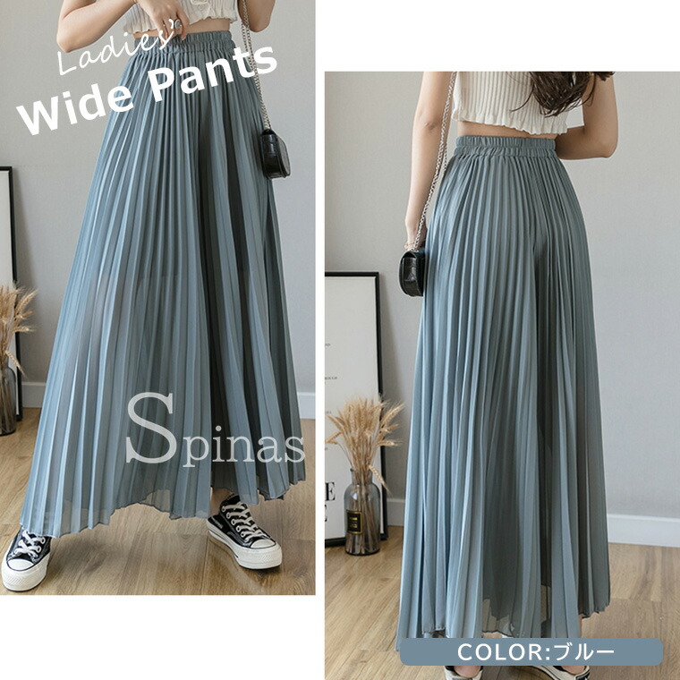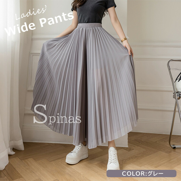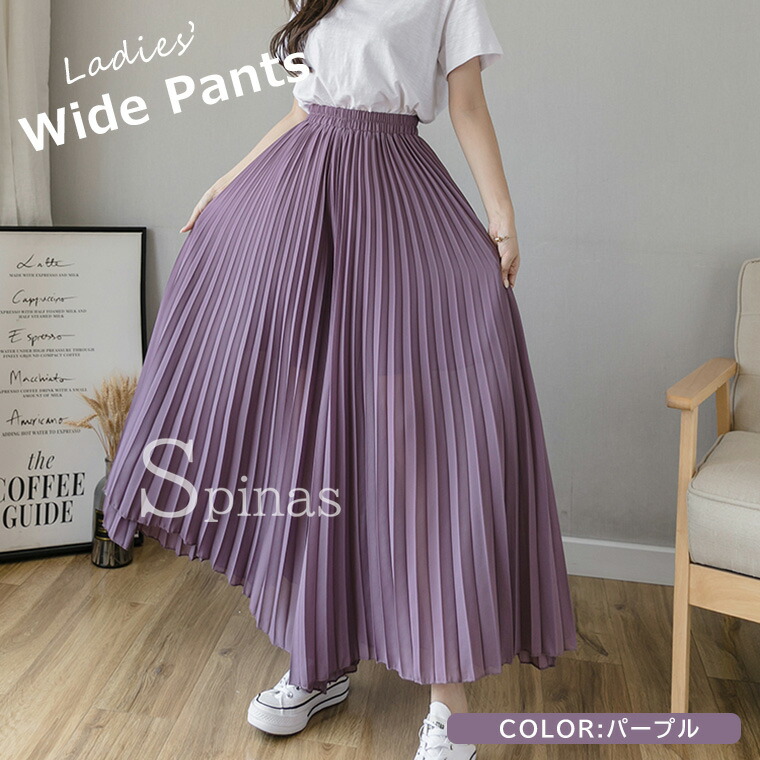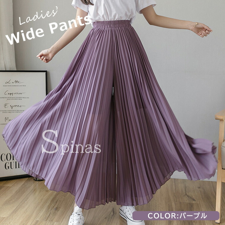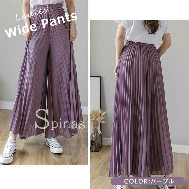 動くたびの揺れ感が印象的 ワイドパンツ ボトムス パンツ 44%Off グレー パープル ブルー ブラック ピンク S M L XL