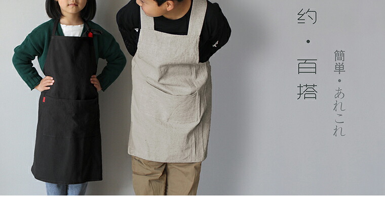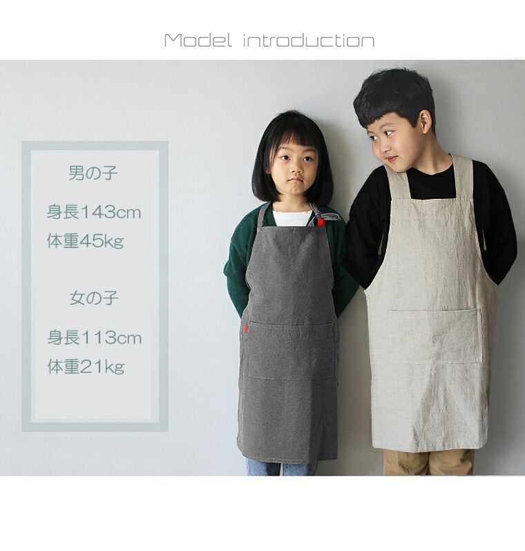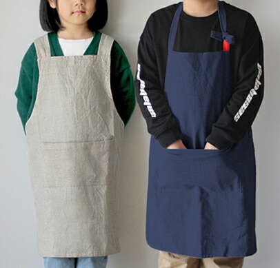 親子コーデもできる キッズ 子供用 大人用 リネン エプロン バッククロス ポケット 小学生 調理実習 ユニセックス お手伝いエプロン