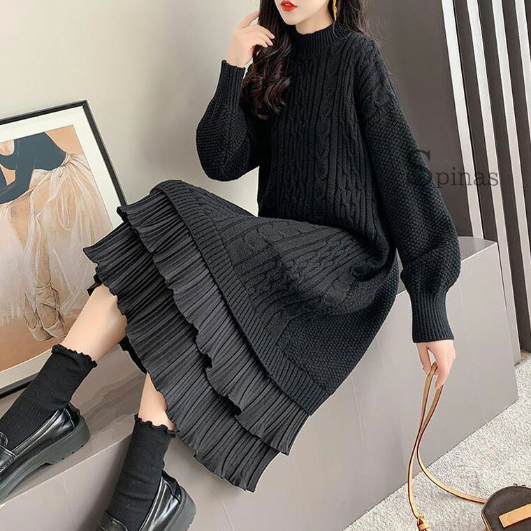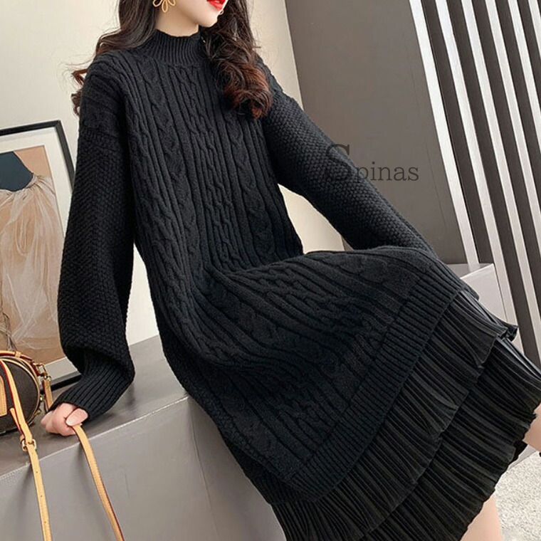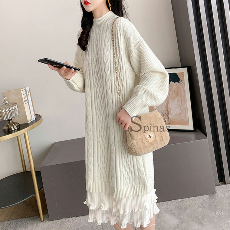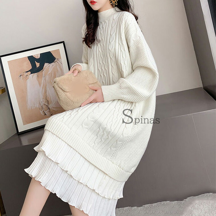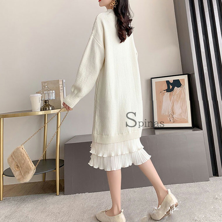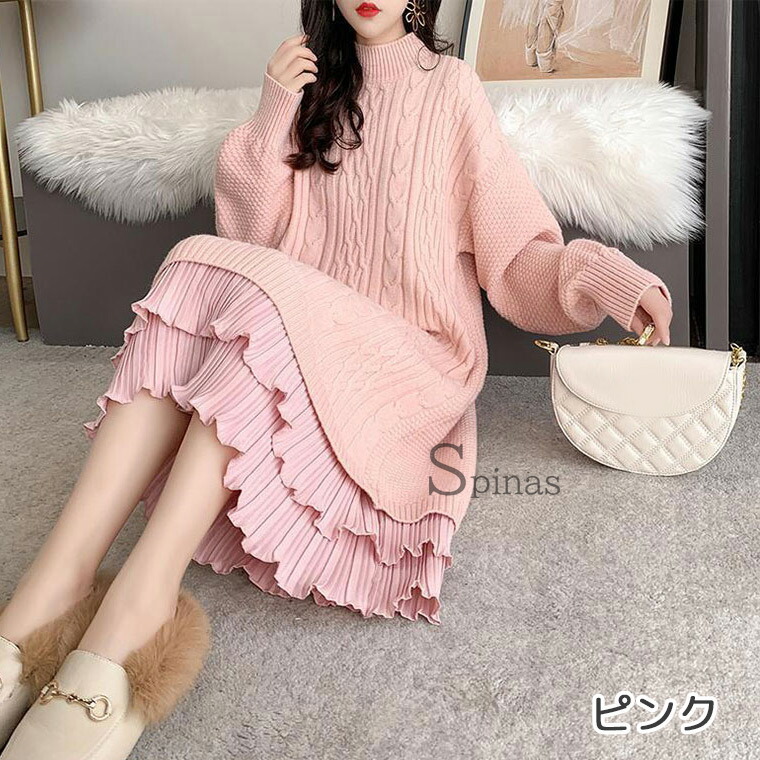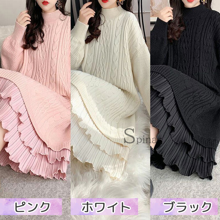 M-3XLまで やわらか上品ニット 裾 ワンピース 続々登場 ピンク ホワイト ブラック M L XL 2XL 3XL
