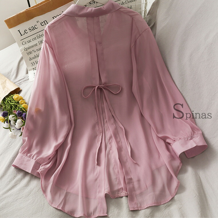 後ろリボン 裾がひらめく綺麗シルエット トップス シャツ ブラウス 割引 オフホワイト ピンク グリーン ブラック グレー ピュアホワイト